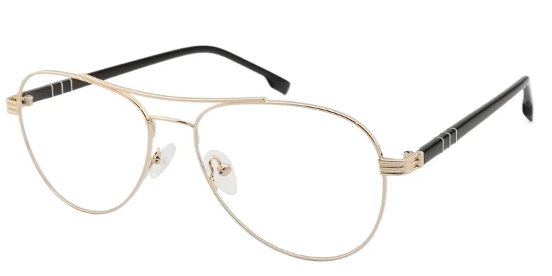 For those who prefer a solid, yet chic look, EFE's Troy Aviator Gold Glasses are ideal. This modified aviator-style frame is both clean and sophisticated, featuring metal accents and a chic brow bar. It's lightweight and comfortable, making it suitable for everyday wear.