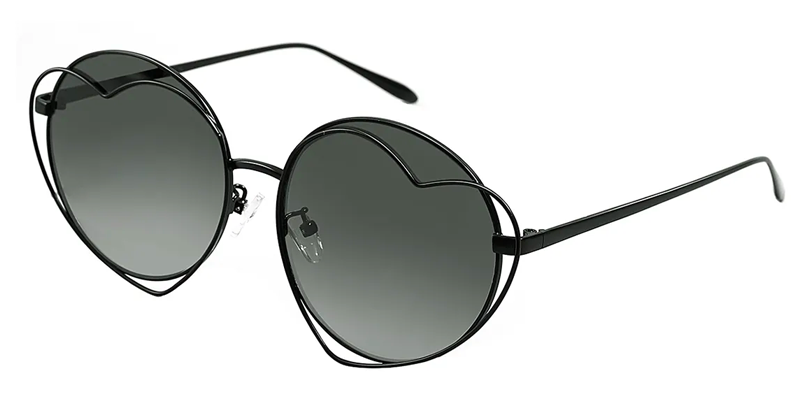 Then there's "Myra", a pair that redefines the concept of round black sunglasses. Myra stands out with its gold heart accents, offering a fresh take on the typical heart designs. These round and heart-shaped frames bring a new dynamic to your look, with lenses that have darker tints, making them perfect for outdoor adventures.