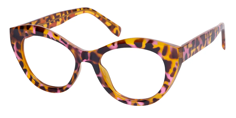 The Hestia Cat-eye Translucent-tea Glasses, though not square, bring a unique charm. They are available in various colors, each offering a different style experience. The cat-eye shape, complemented by gold temple arms, makes Hestia ideal for those who appreciate both classic elegance and contemporary flair.