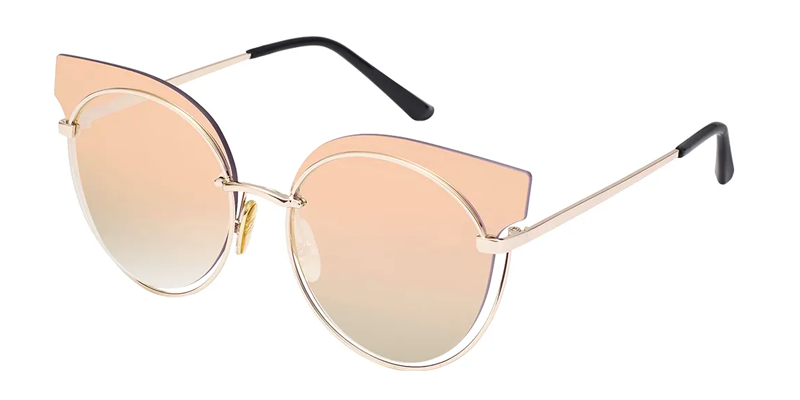 Irma sunglasses offer a contemporary take on the Y2K cat-eye style. Their lightweight frame features adjustable nose pads for comfort. The cat-eye shape, combined with the rose gold color, brings a touch of modernity to this classic Y2K silhouette.