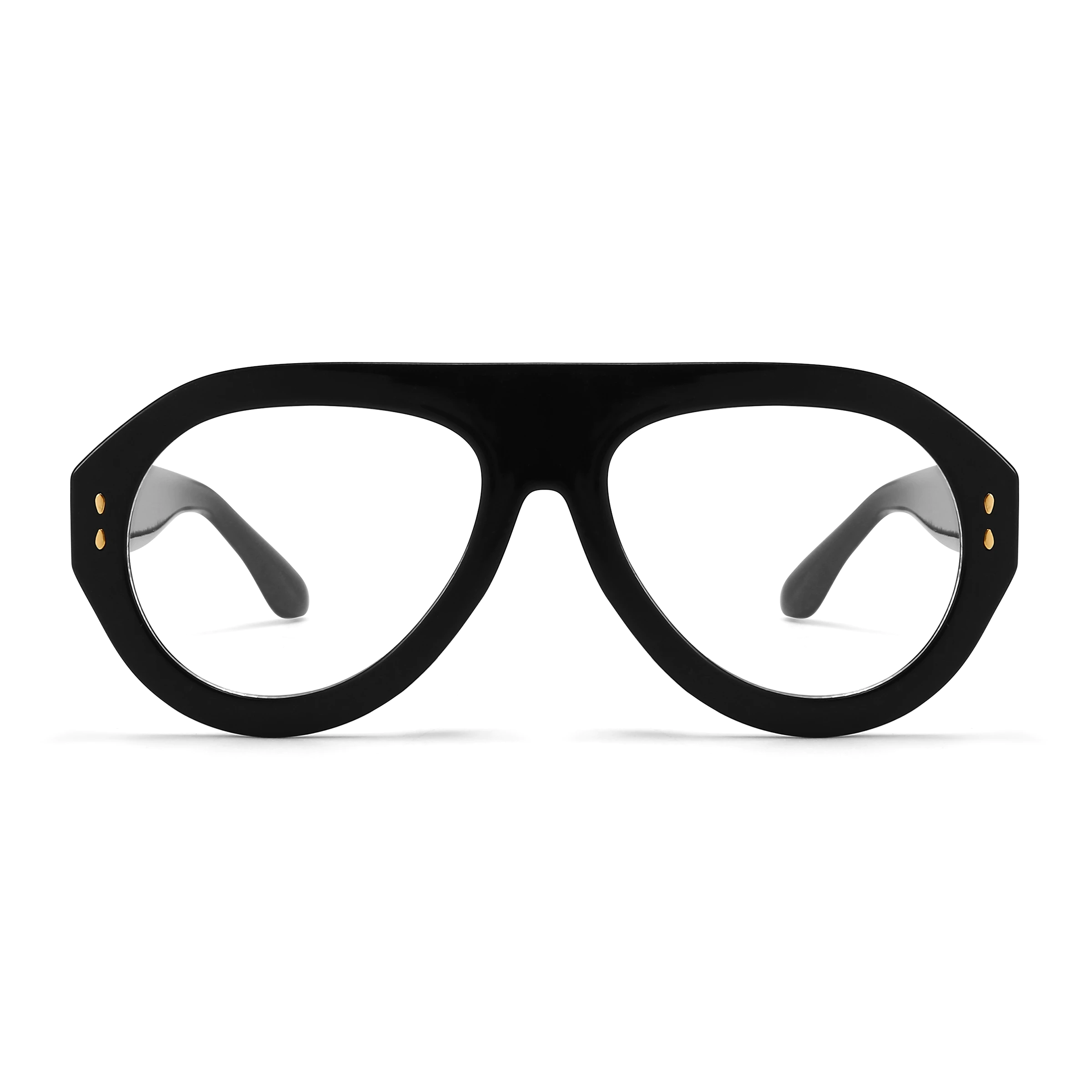 The black aviator frame embodies timeless appeal with its sleek lines and iconic shape. The deep black hue offers a versatile, confident look suitable for both professional and casual settings. Crafted from durable PC material, these frames provide all-day comfort and effortless style.