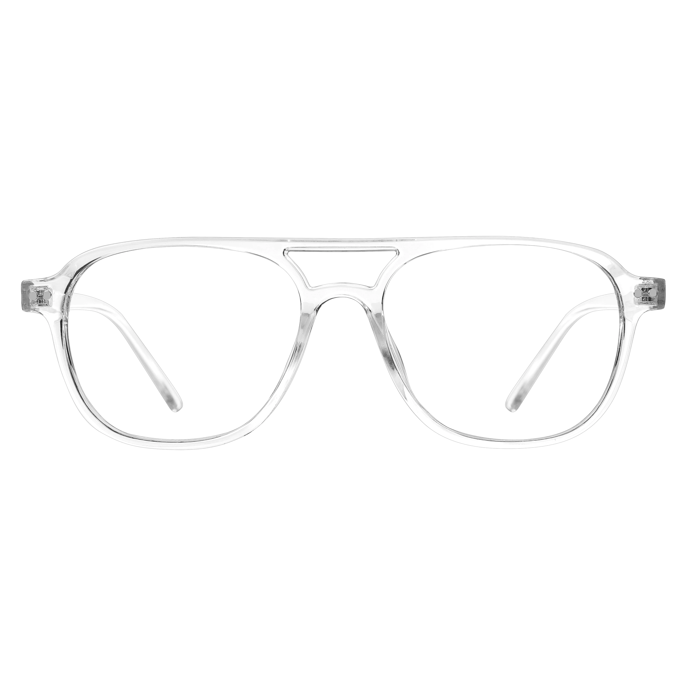 These clear aviator eyeglasses bring a contemporary twist to a classic frame style. The transparent design is sleek, subtle, and perfect for creating a clean, minimalist look. Whether you're in a bright office setting or exploring your favorite city spots, the lightweight plastic frame offers both style and comfort. A perfect choice for trendsetters.