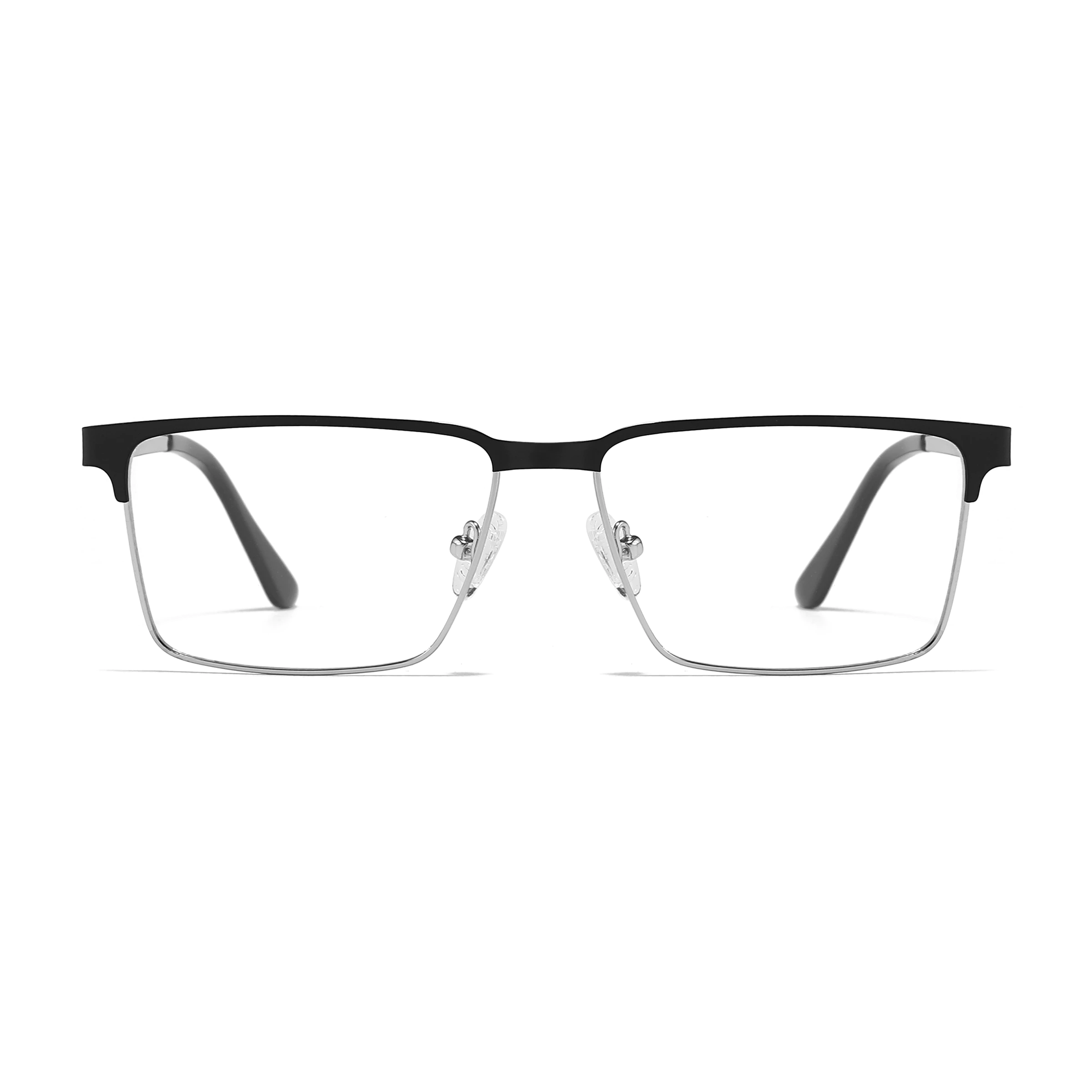 With a sharp black and silver contrast, these rectangle browline glasses offer a modern twist on a timeless business look. The unisex metal frame provides lasting durability and a refined aesthetic, ideal for everyday professional wear.