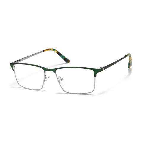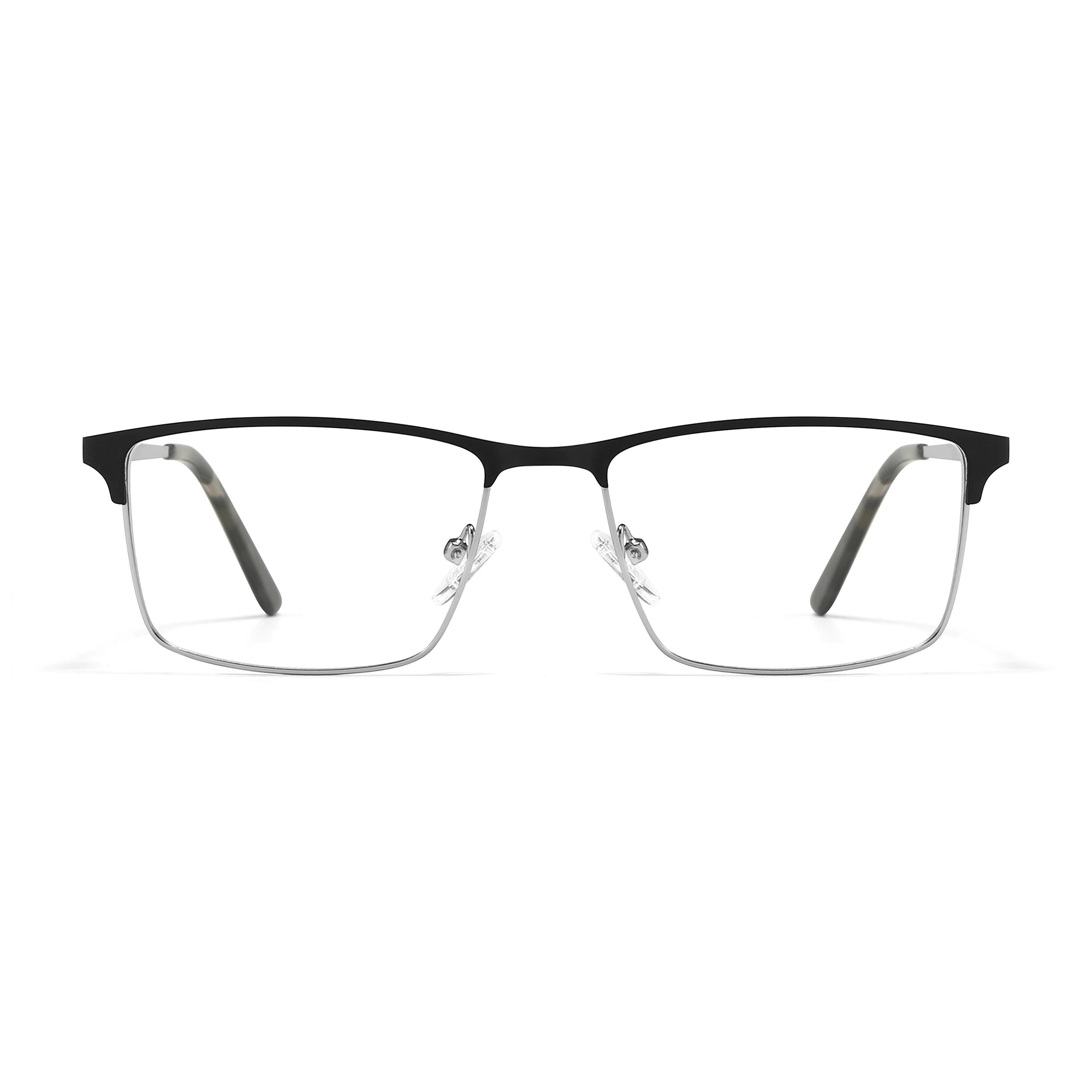 These black and silver browline glasses combine sleek contrasts with timeless design. The rectangle frame enhances facial definition, while the durable metal construction ensures lasting comfort and a professional look suited for both men and women.