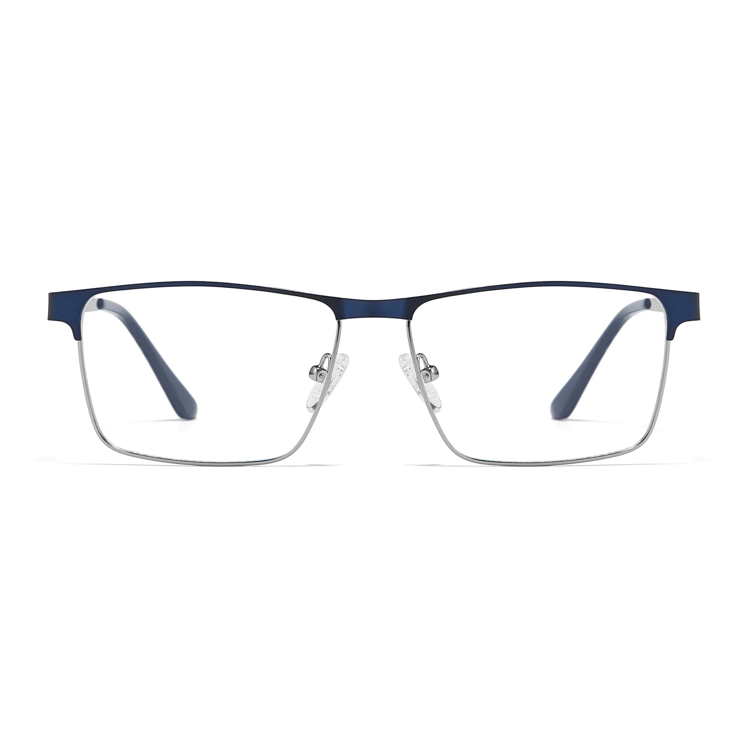 These blue and gunmetal rectangle browline glasses strike the perfect balance between classic and contemporary. Designed for men, the sturdy metal frame delivers all-day comfort and a sharp, professional look suitable for any business occasion.