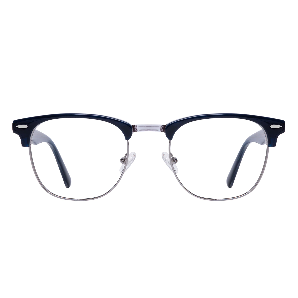 Refresh your eyewear collection with these blue-silver browline glasses. The vibrant blue acetate frame combined with elegant silver metal detailing creates a chic and modern look that stands out in any crowd.
