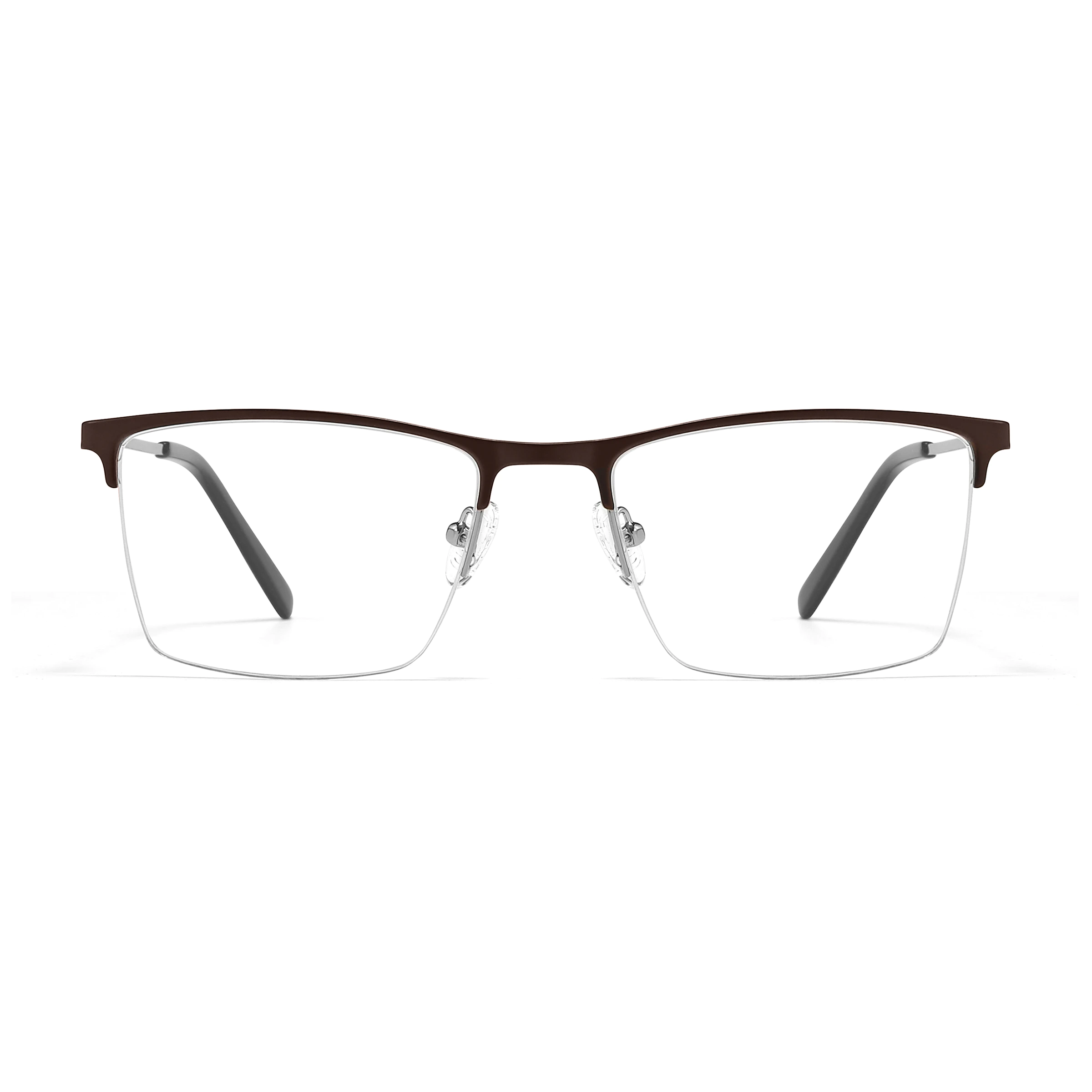 These brown metal browline glasses blend classic elegance with a warm tone, perfect for both men and women. The rectangle frame offers a clean, structured silhouette, while the sturdy metal build ensures long-lasting comfort in any professional setting.