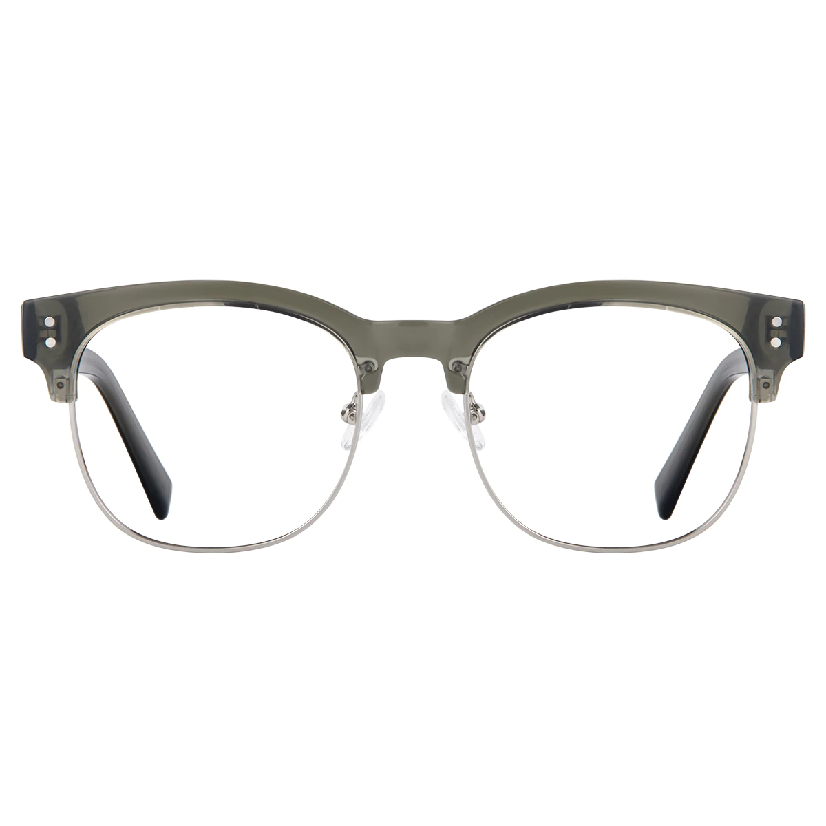Experience the distinctive style of Green-Silver browline glasses. The vibrant green frame with silver accents creates a striking and sophisticated appearance, ideal for making a bold fashion statement. Constructed from durable TR and metal, these glasses combine modern flair with lasting comfort.