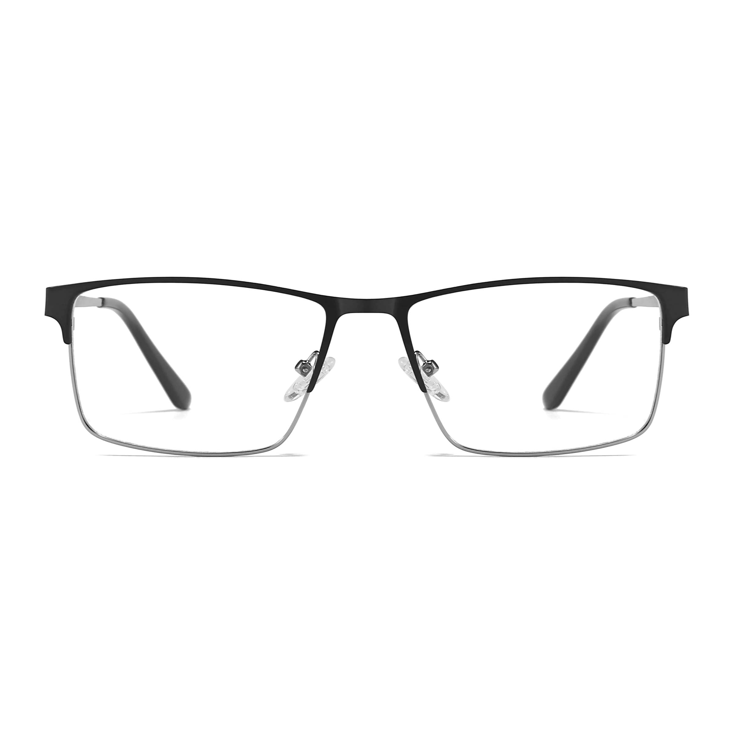 Featuring a sleek gunmetal finish, these men's metal browline glasses offer a timeless business style. The full-rim rectangle frame ensures durability and comfort for all-day professional wear.