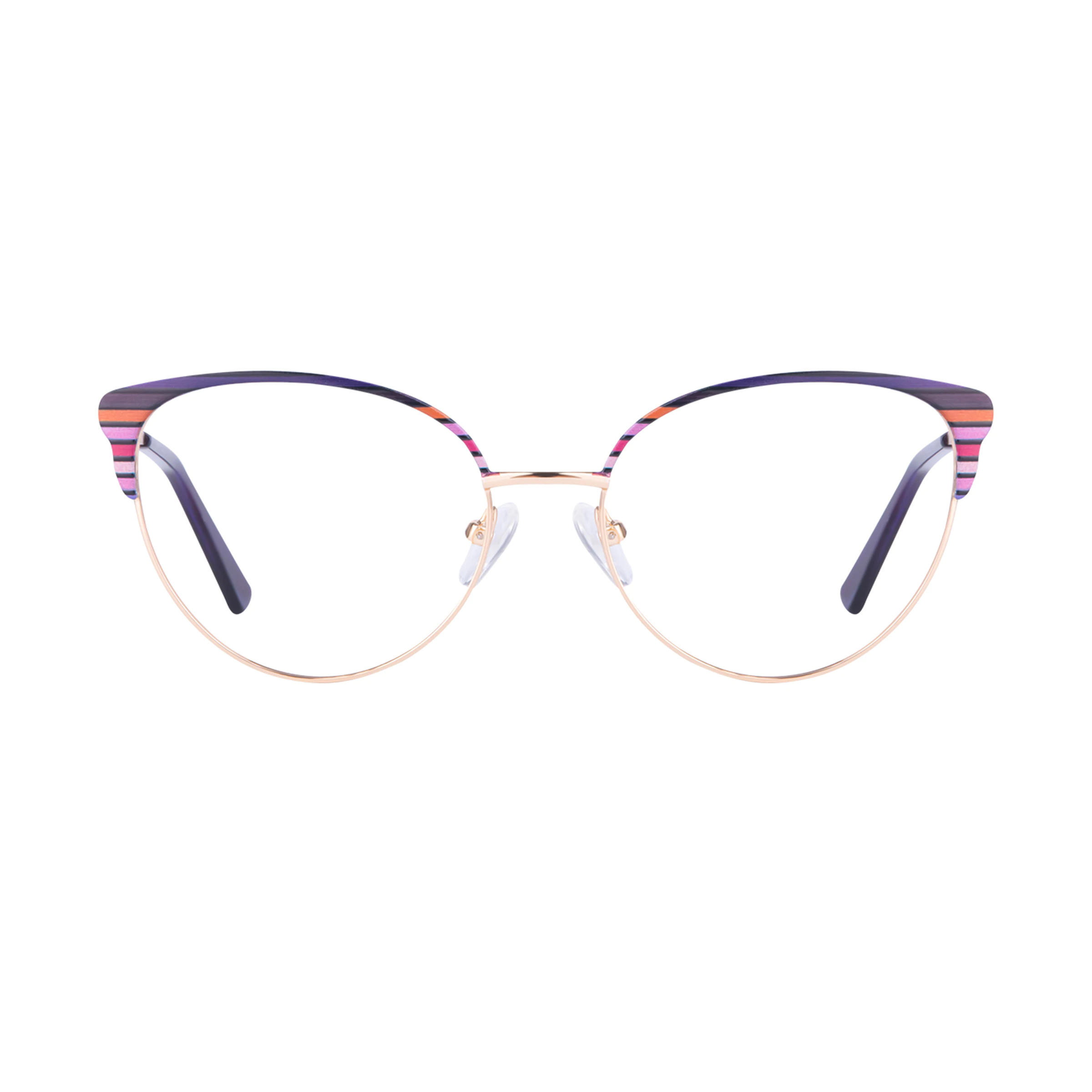 Our Gold and Purple full-rim browline glasses are perfect for those who enjoy a touch of vibrant sophistication. The bold purple frame combined with luxurious gold accents offers a unique and fashionable look. Constructed with high-quality metals, these glasses provide a comfortable fit and durability, making them ideal for both everyday wear and special occasions.