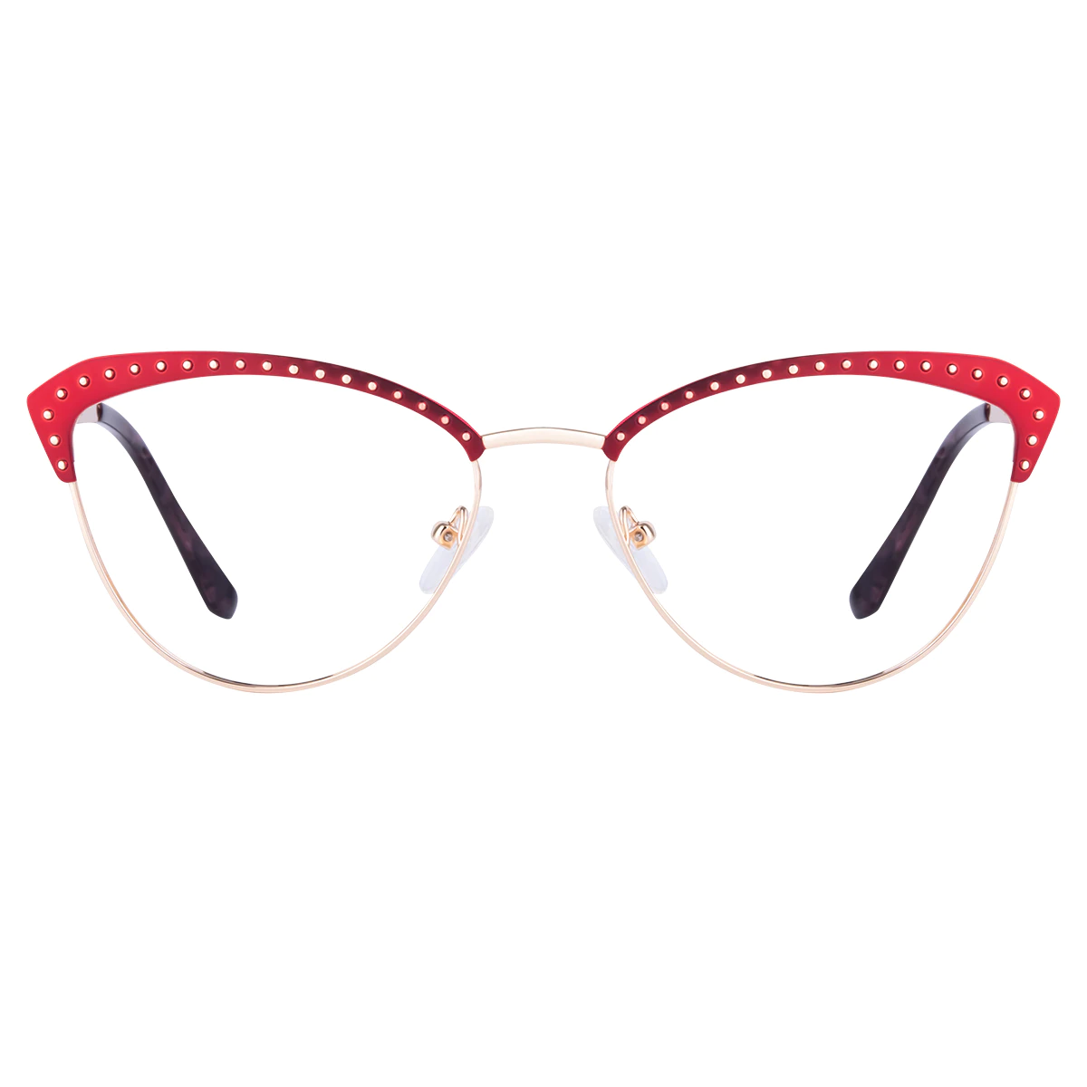 Made from premium metals, the Red and Gold Browline Cat-Eye glasses offer exceptional durability and comfort. The full-rim design provides a secure fit, while the lightweight material ensures all-day wearability. The rich red and gold color scheme adds a touch of luxury, making these glasses both functional and stylish.