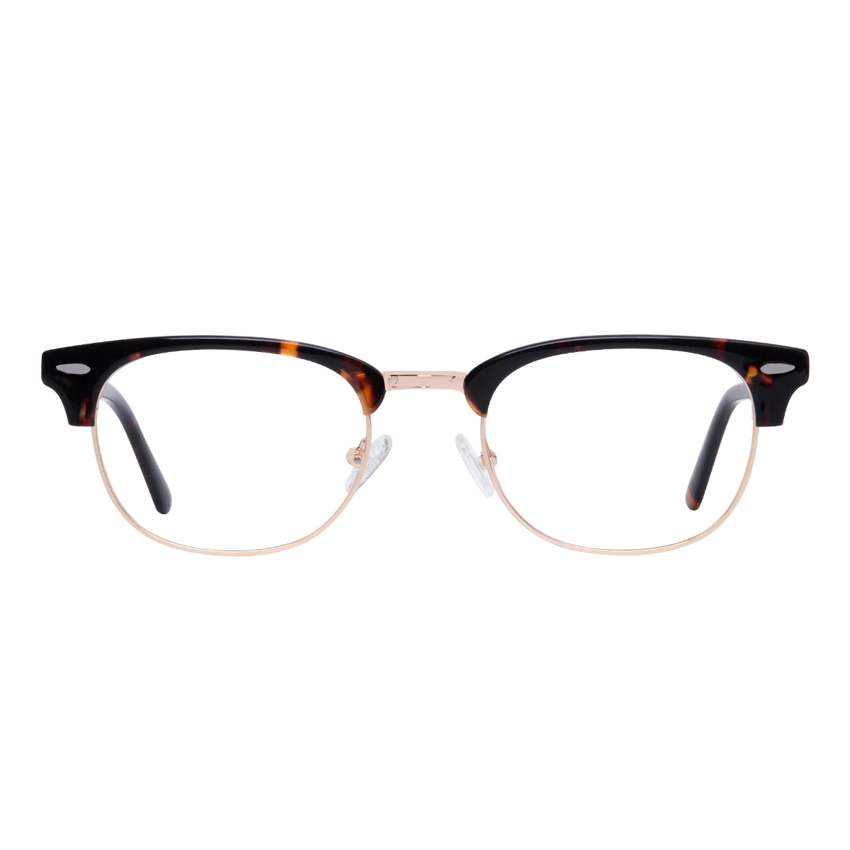 Enhance your style with these tortoiseshell-gold browline eyeglasses. The rich tortoiseshell acetate combined with luxurious gold metal provides a classic yet elegant look that
