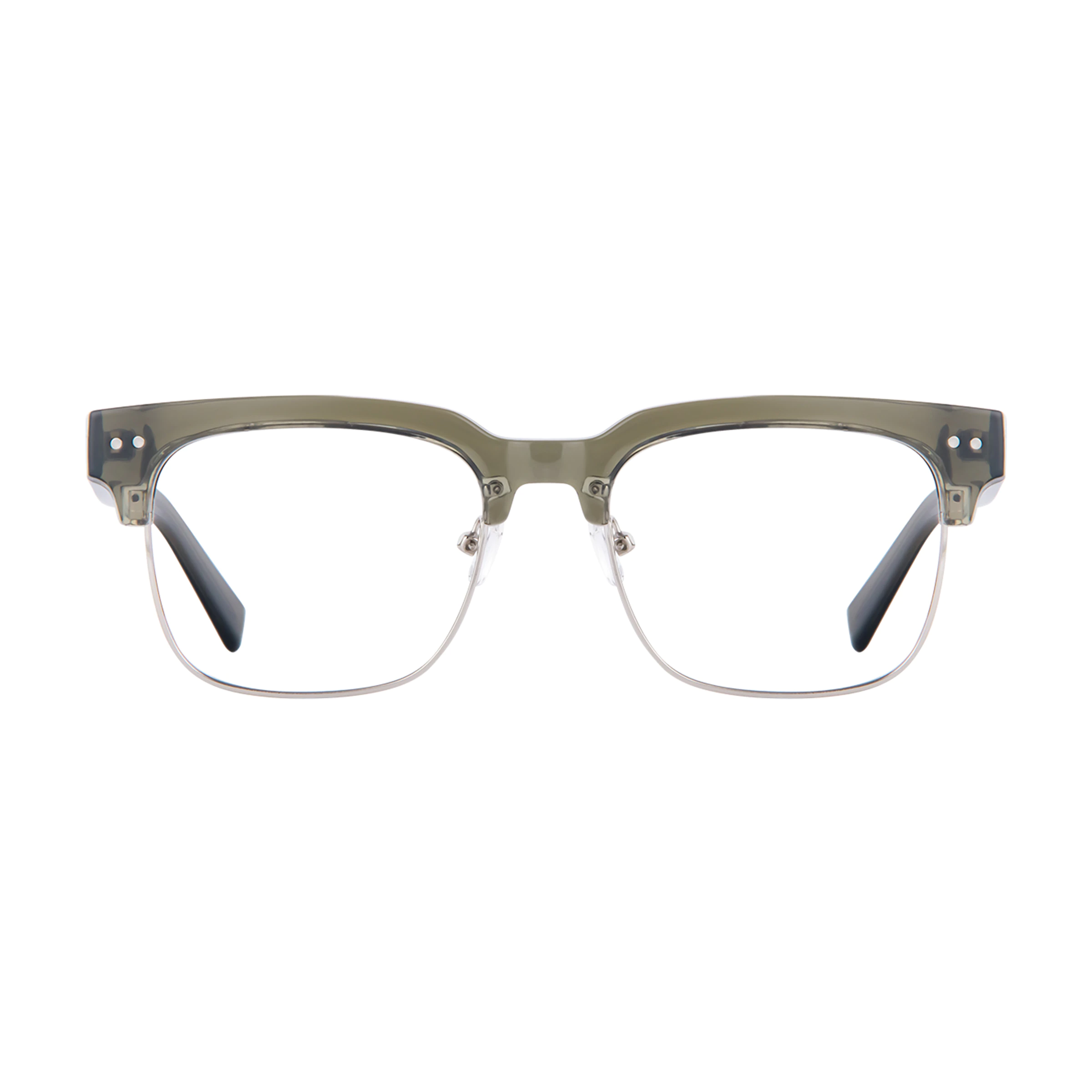 The vibrant green frame paired with sleek silver highlights offers a modern yet classic look. Perfect for making a subtle statement, these glasses are made from high-quality TR and metal to ensure both style and comfort.