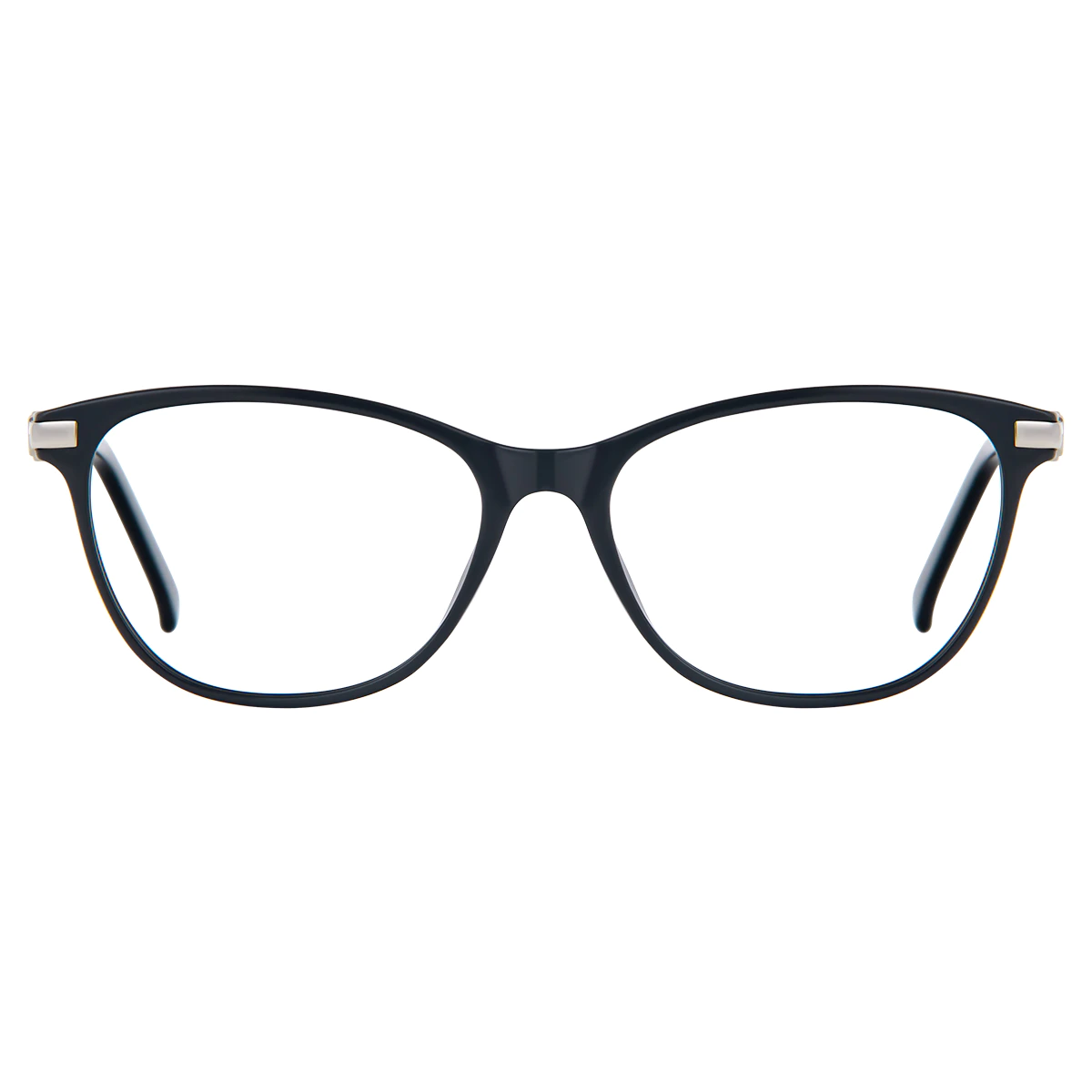 The black acetate frame combined with silver accents creates a sleek and sophisticated look, perfect for those who love classic and minimalist design with a modern edge. The silver detailing adds a refined touch to the bold cat-eye shape.