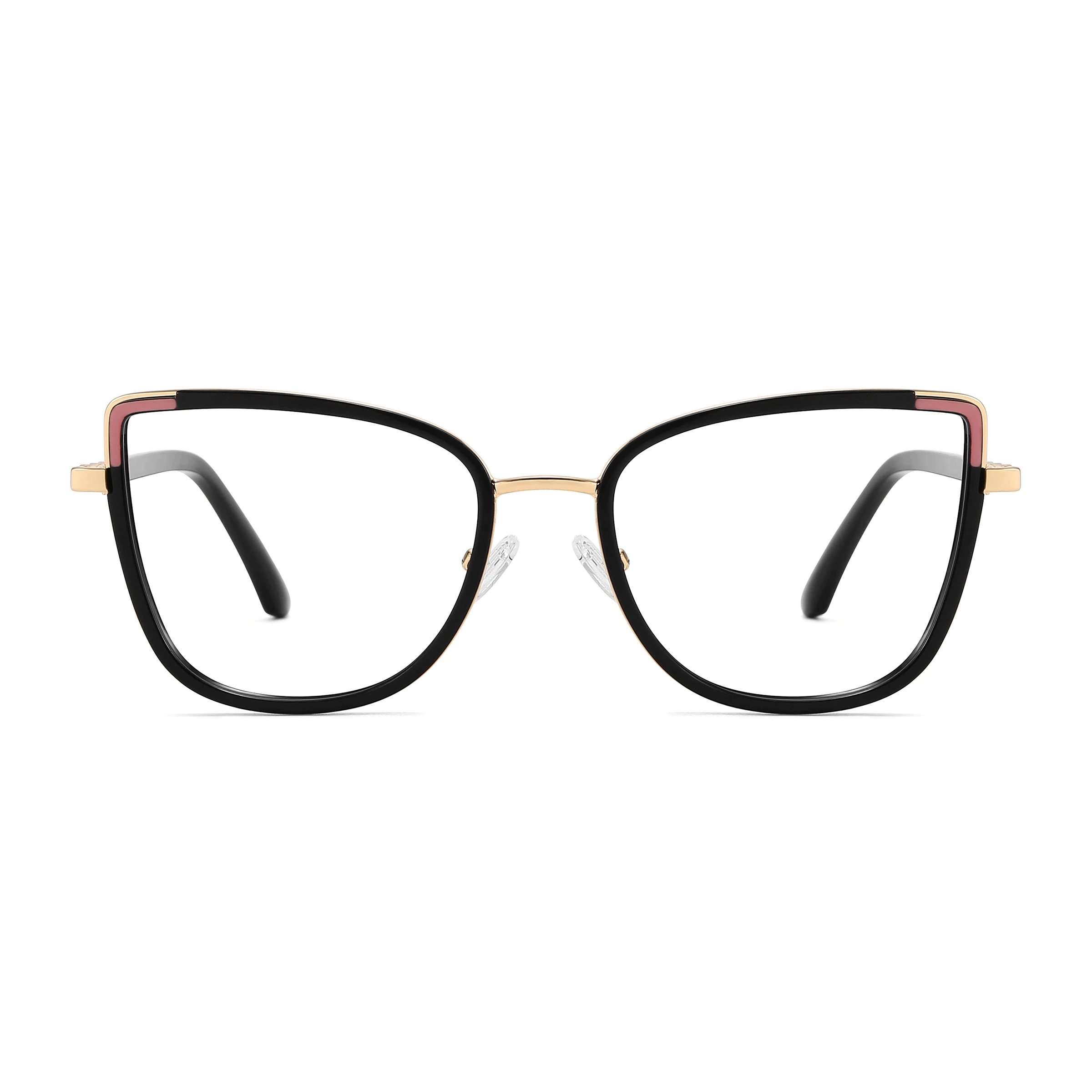 The timeless elegance of black frames meets the refined touch of gold accents, creating a bold and sophisticated style. These cat-eye glasses are perfect for commanding attention in both formal and casual settings.