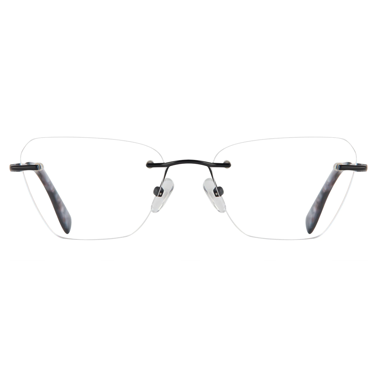 Elevate your style with our Black and Tortoiseshell Rimless Cat-eye glasses. The sophisticated rimless design is highlighted by a striking contrast between deep black and classic tortoiseshell. Ideal for professional environments, these glasses combine a chic cat-eye shape with the durability of high-quality metal, ensuring both comfort and elegance throughout the day.