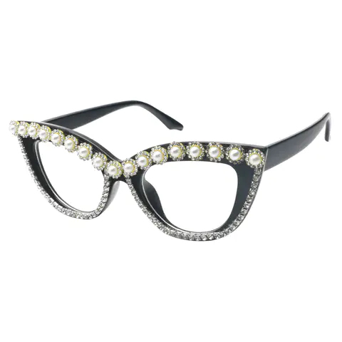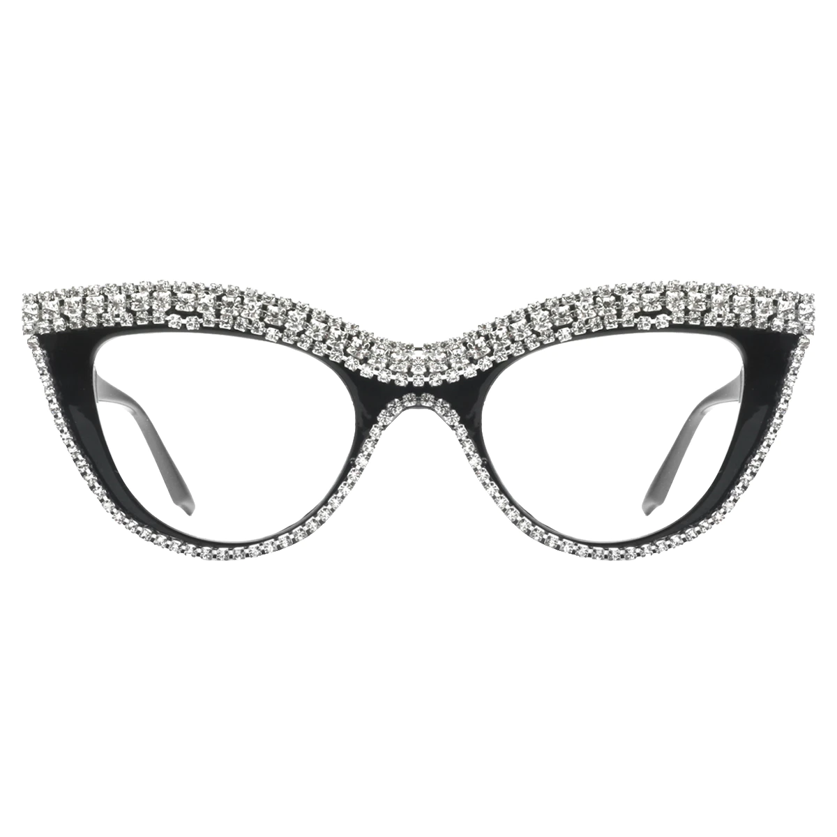 The Black with Rhinestones full-rim cat-eye glasses bring a touch of glamour and sophistication to your look. The sleek black PC frame is adorned with sparkling rhinestones, adding a dazzling accent to the iconic cat-eye shape. Lightweight and durable, these glasses are perfect for evening events, parties, or whenever you want to shine.