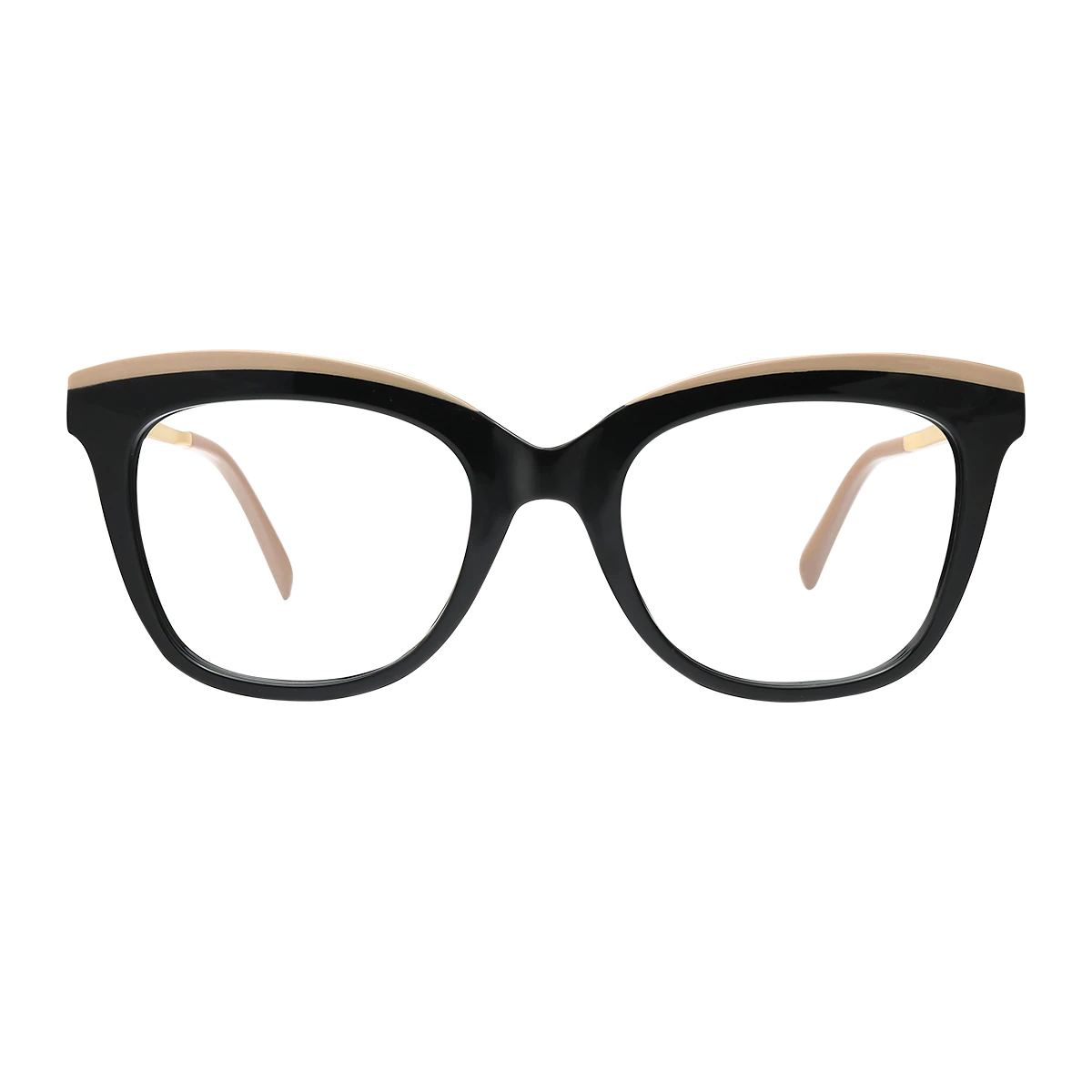 This trendy cateye-square full-rim frame in black and gold, made from durable CP material, offers a bold yet versatile look. The unique combination of a cateye flair with a square shape adds sophistication to any outfit, while the dual-tone design makes it perfect for transitioning between work and casual settings. Lightweight and comfortable for all-day wear.