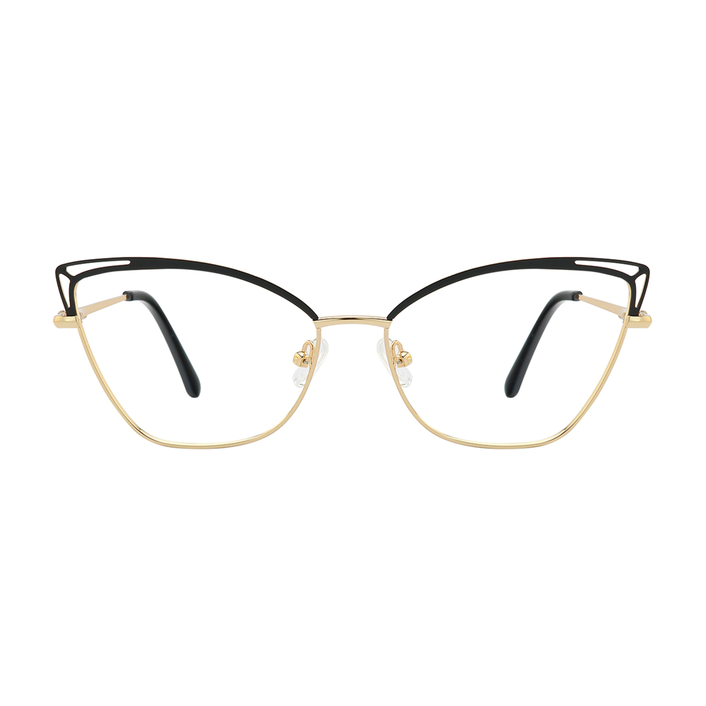 Stand out with a bold and modern aesthetic in these black-gold cat-eye glasses. Perfect for trendsetters, this full-rim metal frame adds a striking, fashionable edge to your eyewear collection.