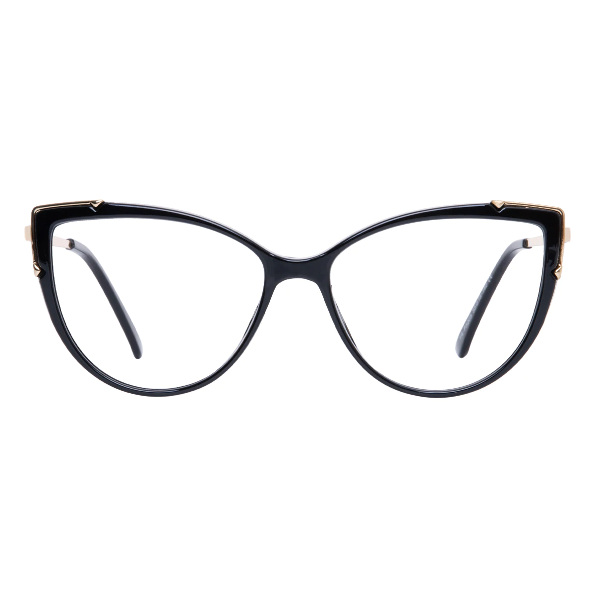 Discover the perfect balance of bold and elegant with these black-gold cat-eye eyeglasses. The sleek black TR90 frame is enhanced by sophisticated gold accents, making a striking and classy statement.