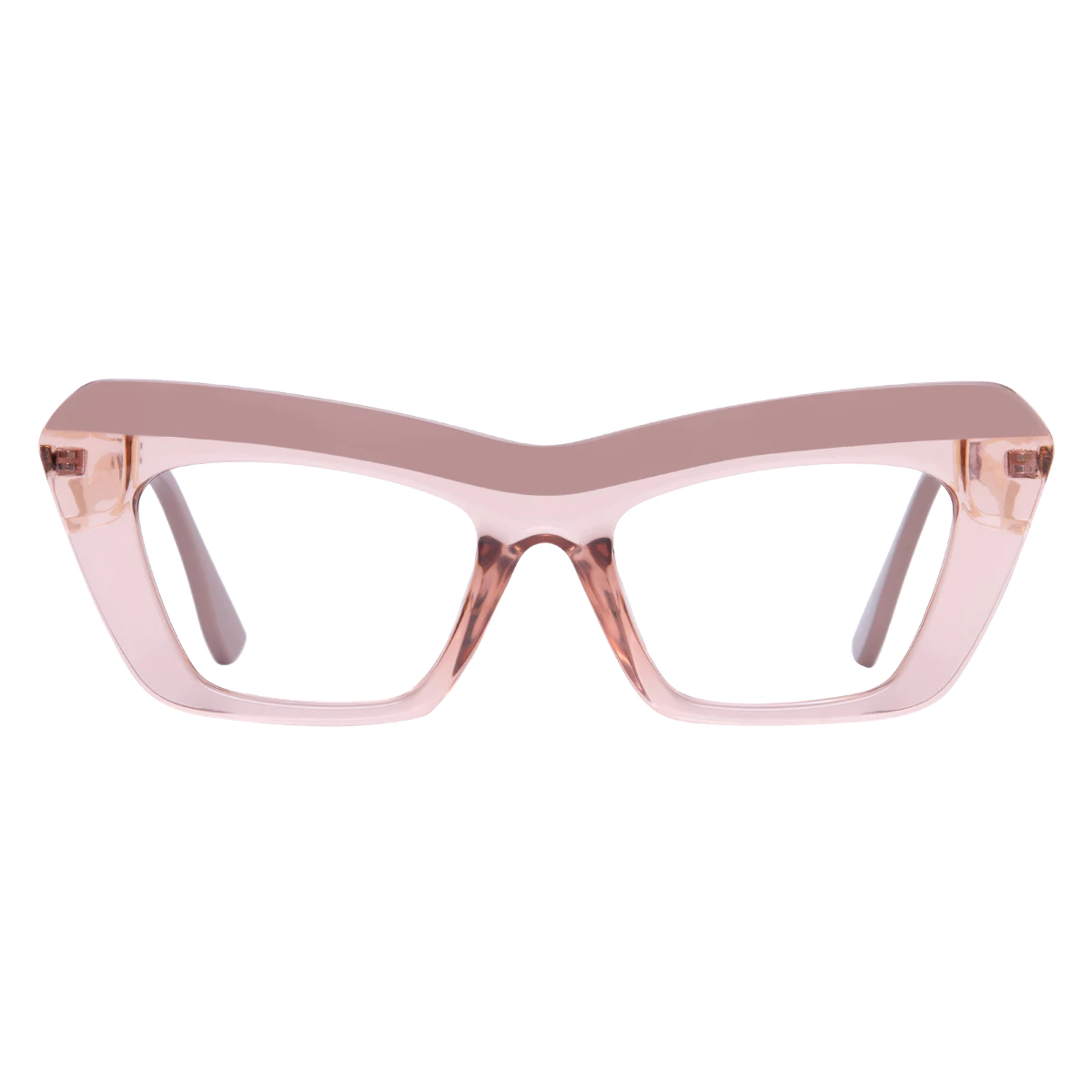 Stand out with the Pink & Translucent Cat-eye Square glasses. The TR90/Metals frame offers a delicate balance of comfort and style, while the pink and translucent combination brings a touch of modern femininity, making these glasses ideal for those who love a soft, elegant look.