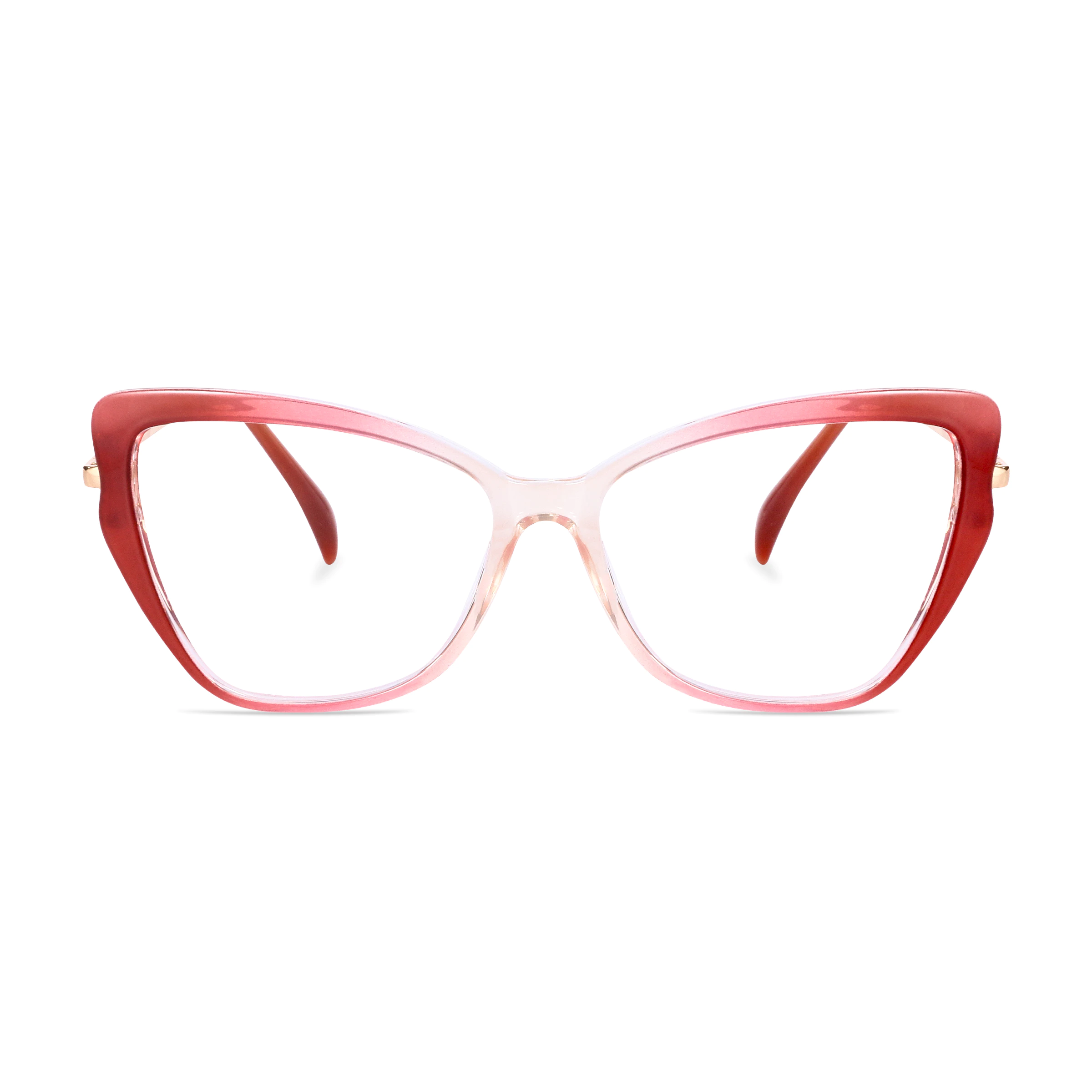 The cat-eye gradient red eyeglasses showcase a bold yet feminine style with their striking gradient effect. The shape enhances facial features while the vibrant red gradient adds a modern touch. Perfect for making a statement in both professional and casual settings.The square frame adds structure and sweetness to any face shape, making them ideal for brightening up everyday outfits or special occasions.