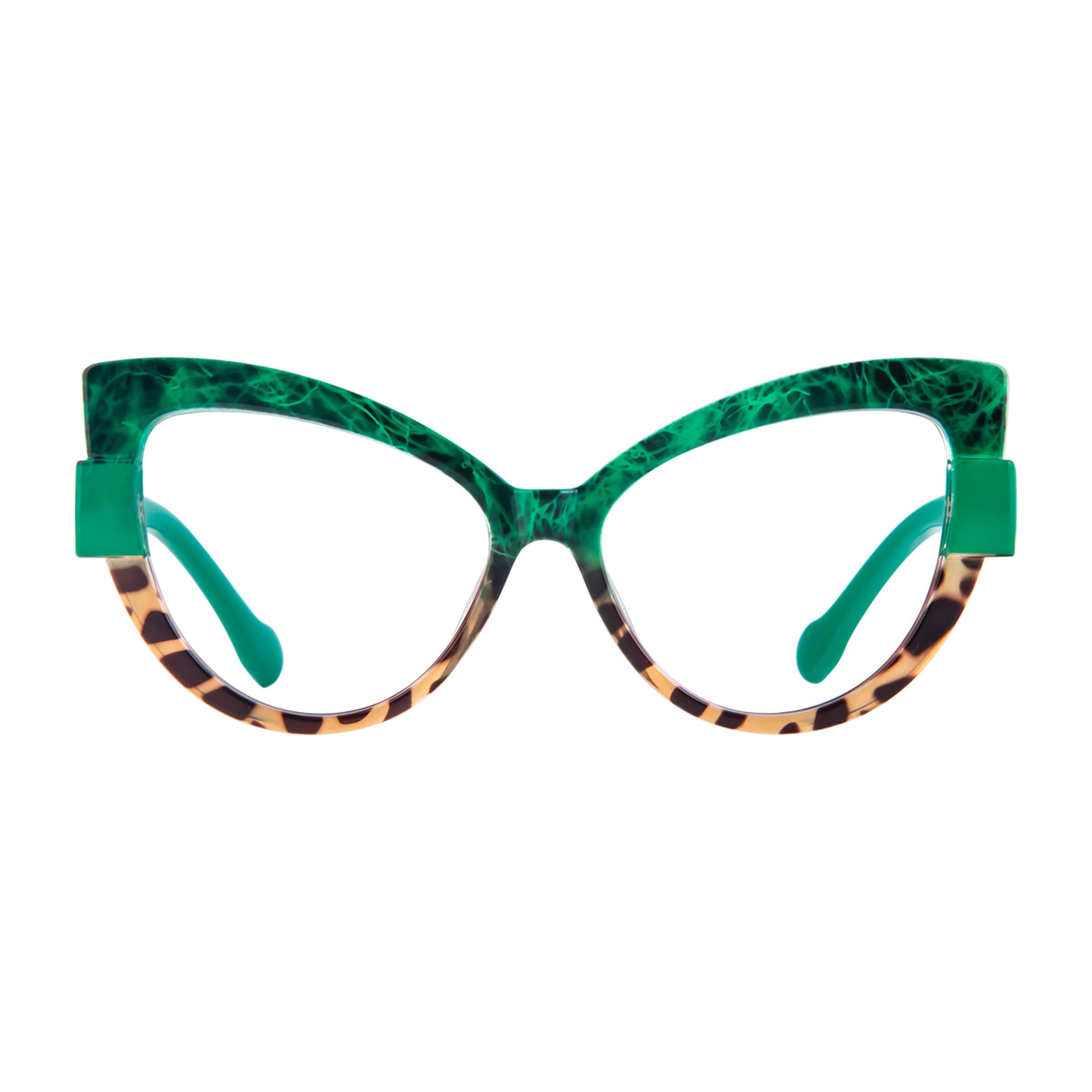 Discover a fresh take on a classic design with our Green-Tortoiseshell Cat-Eye Glasses. Made from high-quality TR90, these full-rim frames offer a lightweight feel and robust durability. The mix of green and tortoiseshell adds a unique, earthy twist to your fashion look, making them a must-have for any style enthusiast.