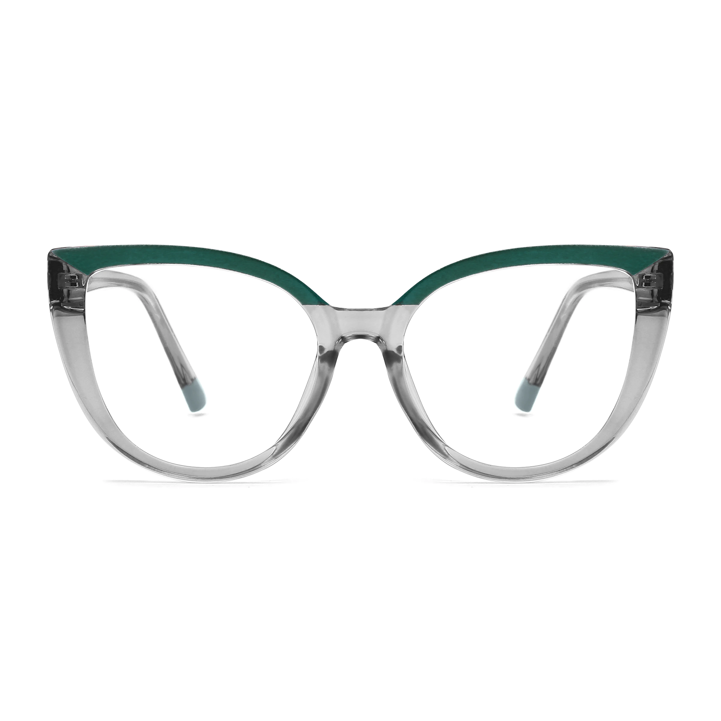 The Green/Transparent Gray cat-eye frame is perfect for those who want to add a vibrant yet sophisticated accessory to their collection. Its contemporary design and striking color combination make it ideal for both formal and casual occasions.