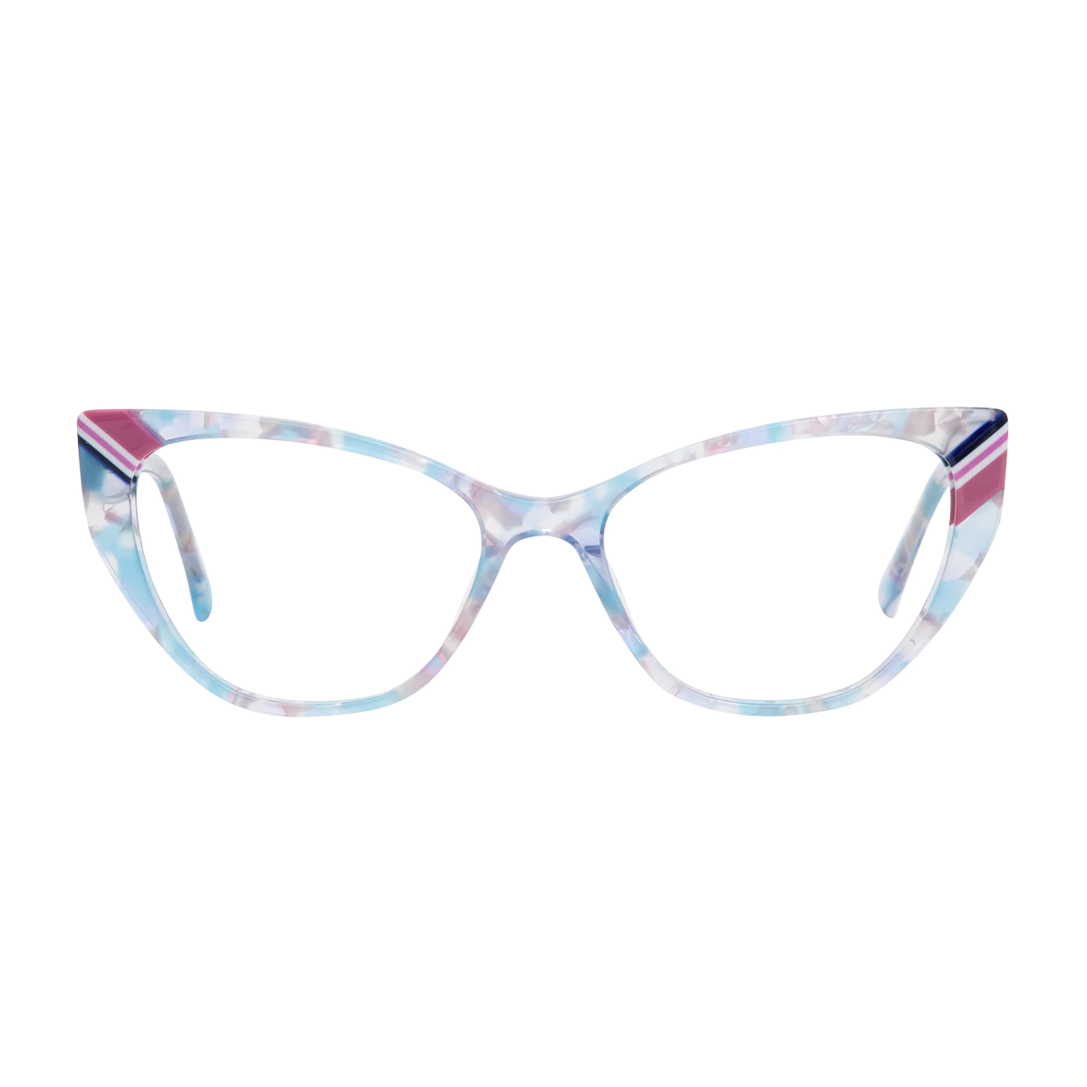 Refresh your eyewear collection with translucent-blue cat-eye frames. The full-rim design, made from PC/CP, showcases a modern translucent-blue finish that offers a unique and trendy appearance. These glasses are ideal for adding a pop of color to your look while maintaining a chic, contemporary style.