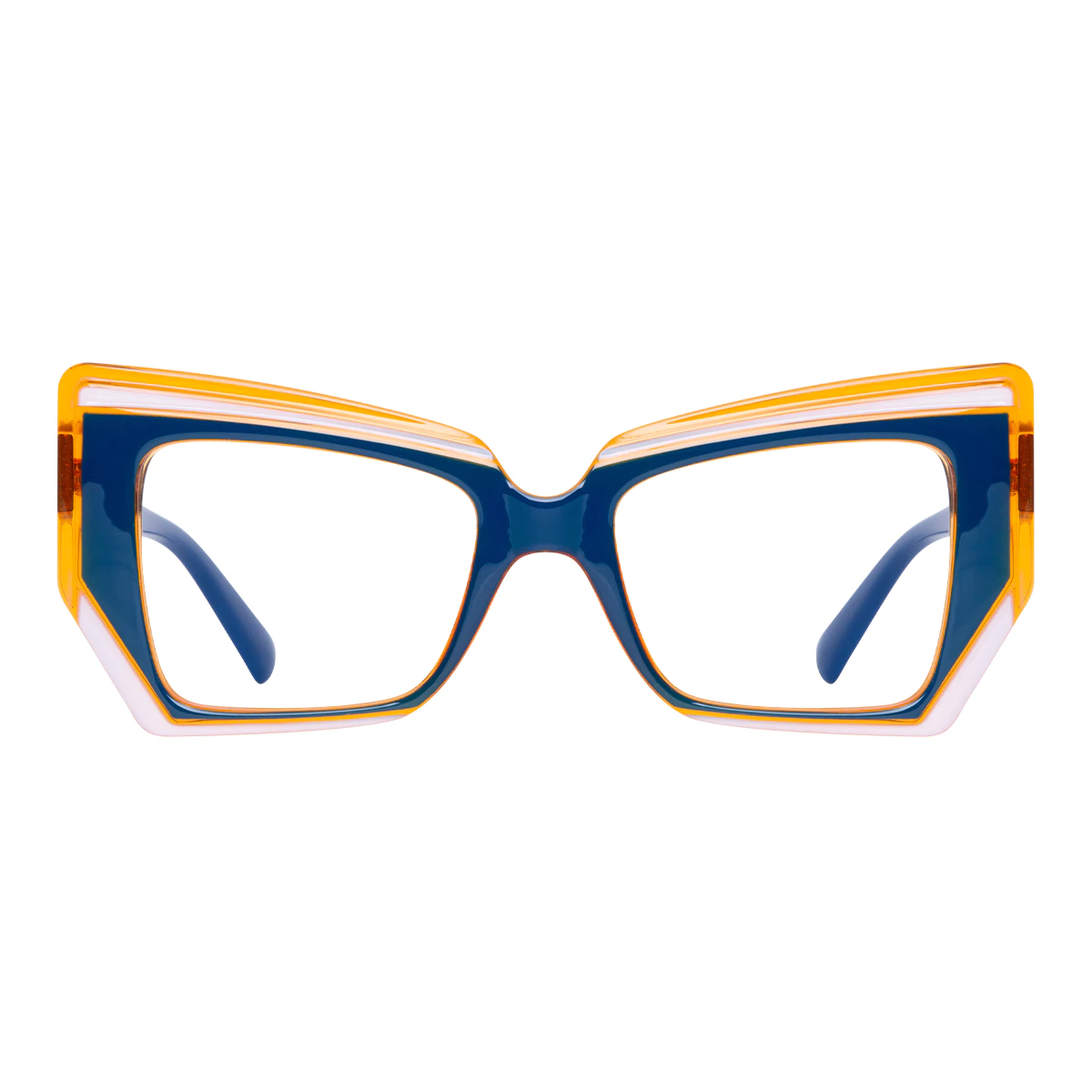 Vibrant purple and orange hues combine in these Cat-eye glasses, offering a bold and lively look. The TR90 material provides durability and comfort, making these glasses ideal for adding a pop of color to any outfit.