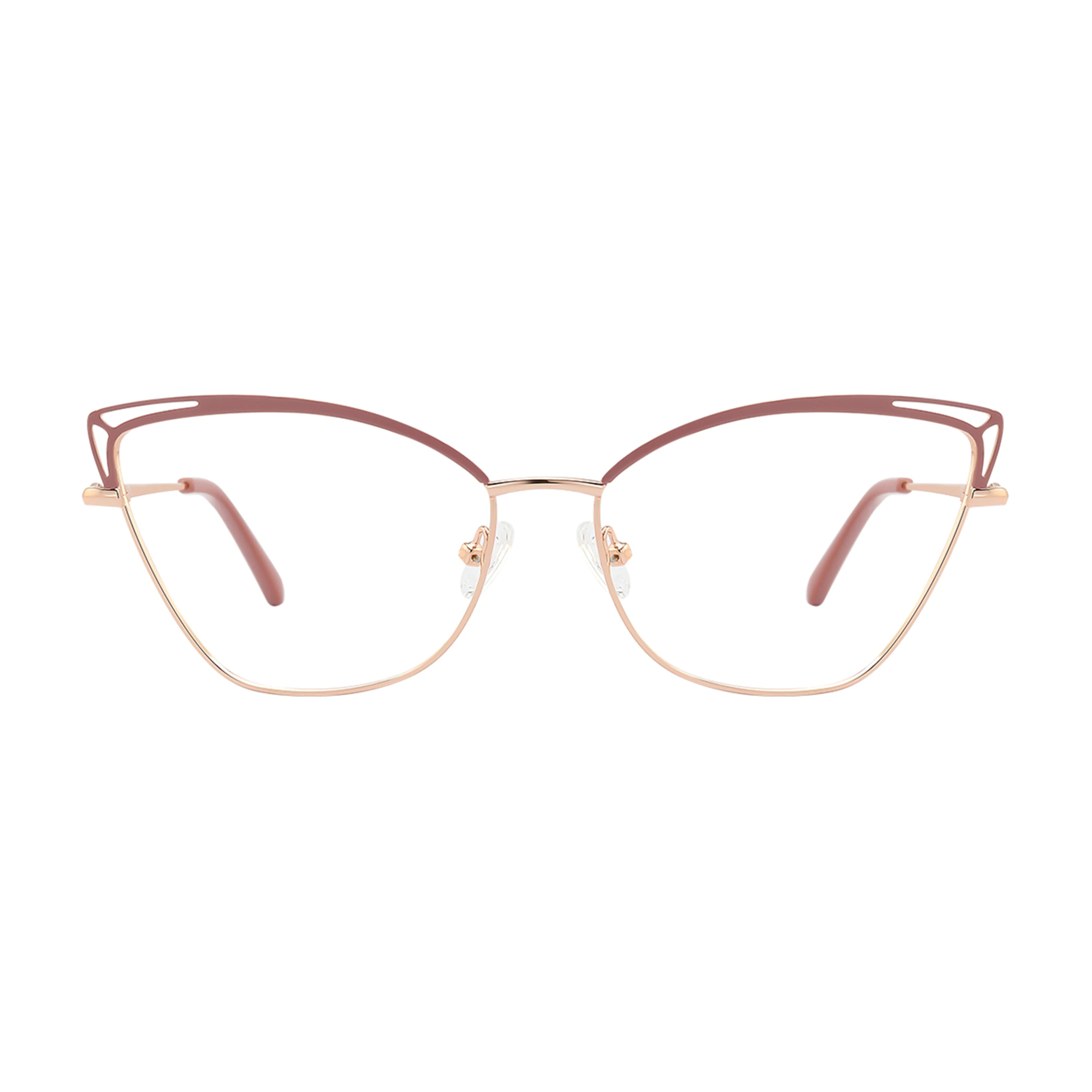 Highlight your feminine charm with these pink gold-pink metal cat-eye glasses. The delicate color scheme and sleek full-rim design offer an effortlessly chic addition to any wardrobe.