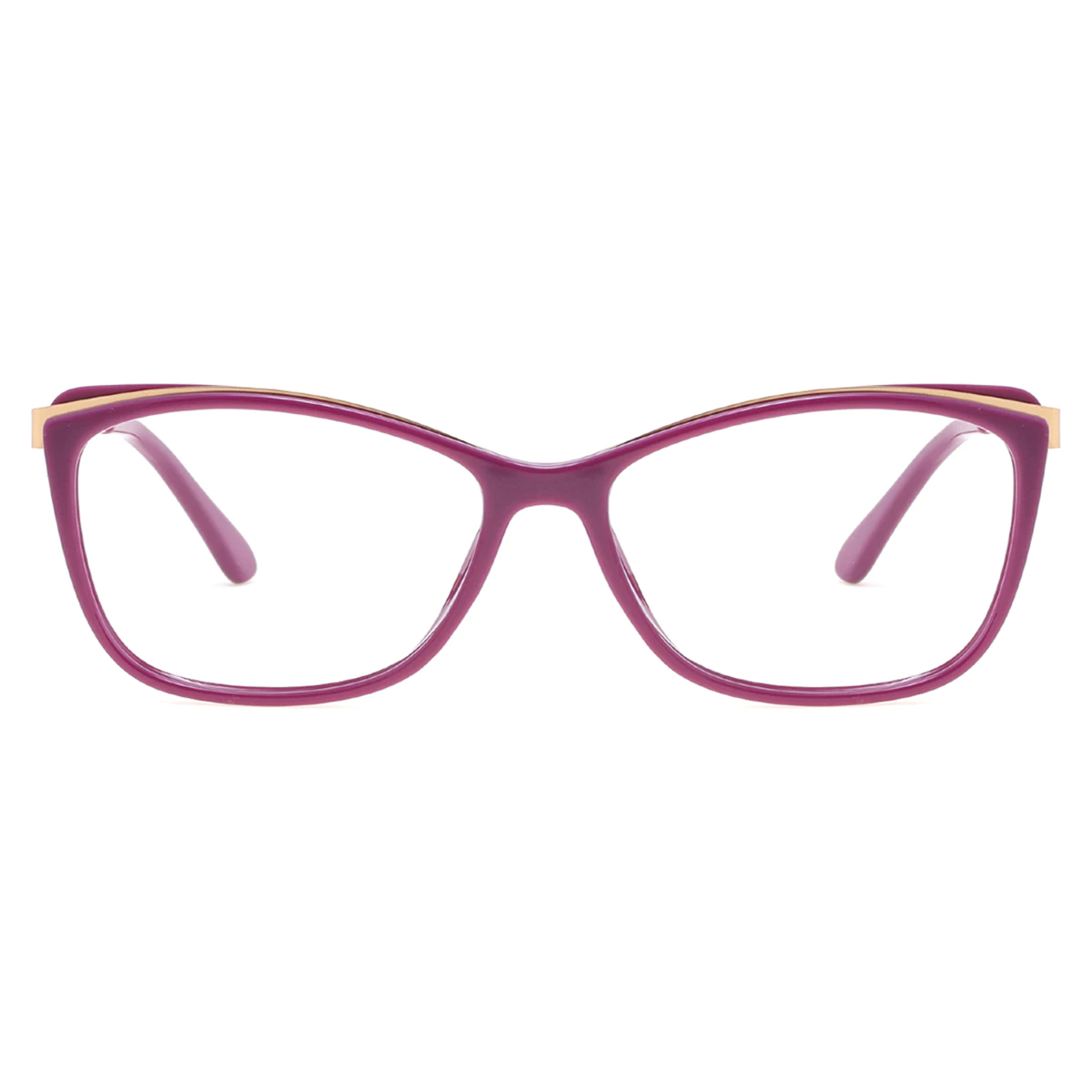 The purple and gold cat-eye rectangle eyeglasses are a bold choice for those who love to stand out. The rich purple color exudes confidence, while the gold accents add a luxurious touch. Crafted with TR90 and metal, they are both lightweight and durable for everyday use.