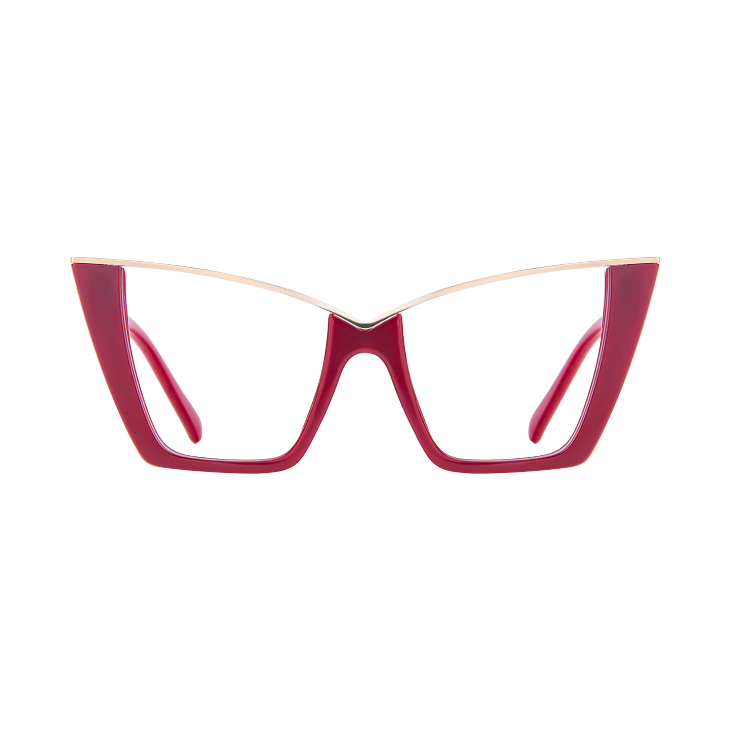 The Red-Gold Cat-Eye glasses bring a bold and glamorous touch to your style. The vibrant red combined with elegant gold accents creates a striking contrast. Ideal for adding a splash of color to evening wear or making a fashion statement at social events.
