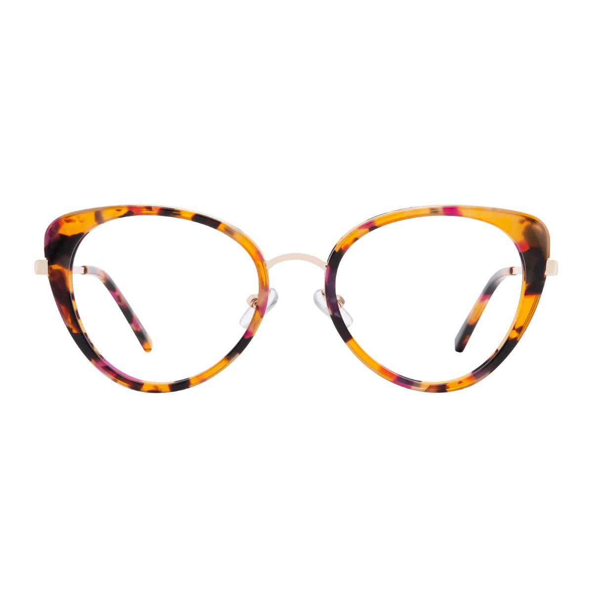 Redefine your style with our trendy pink-tortoiseshell cat-eye eyeglasses. The combination of delicate pink tones and classic tortoiseshell creates a strikingly fashionable look. Crafted from acetate and metal, these full-rim frames blend durability with a chic, contemporary flair. Ideal for those who want to make a stylish statement with a unique twist.