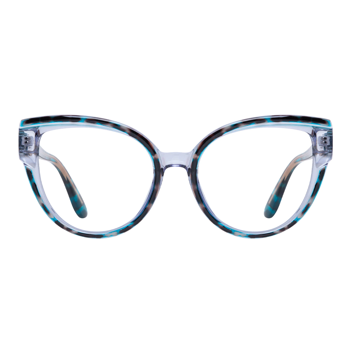 Make a bold impression with these blue-tortoiseshell cat-eye frames. The unique color combination exudes confidence and personality, perfect for trendsetters who love to make a statement.