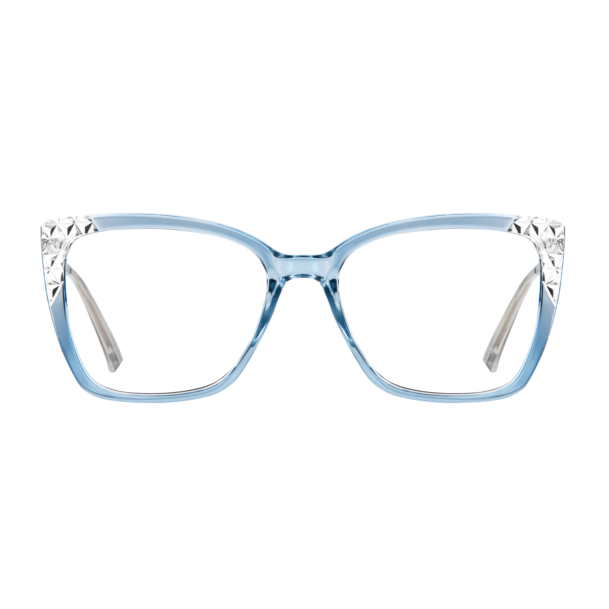 Crafted with premium TR90 and silver-toned metal, these transparent blue cat eye glasses bring a refreshing and modern touch to your daily look. The bold silhouette and lightweight construction offer both durability and comfort.