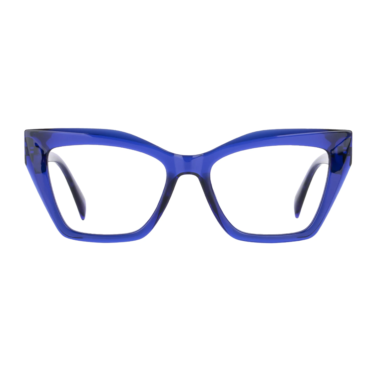 The Blue and Translucent cat-eye glasses offer a fresh and vibrant style. Crafted from acetate, these frames are durable and comfortable. The mix of blue and translucent elements brings a pop of color and modernity to your daily wear.