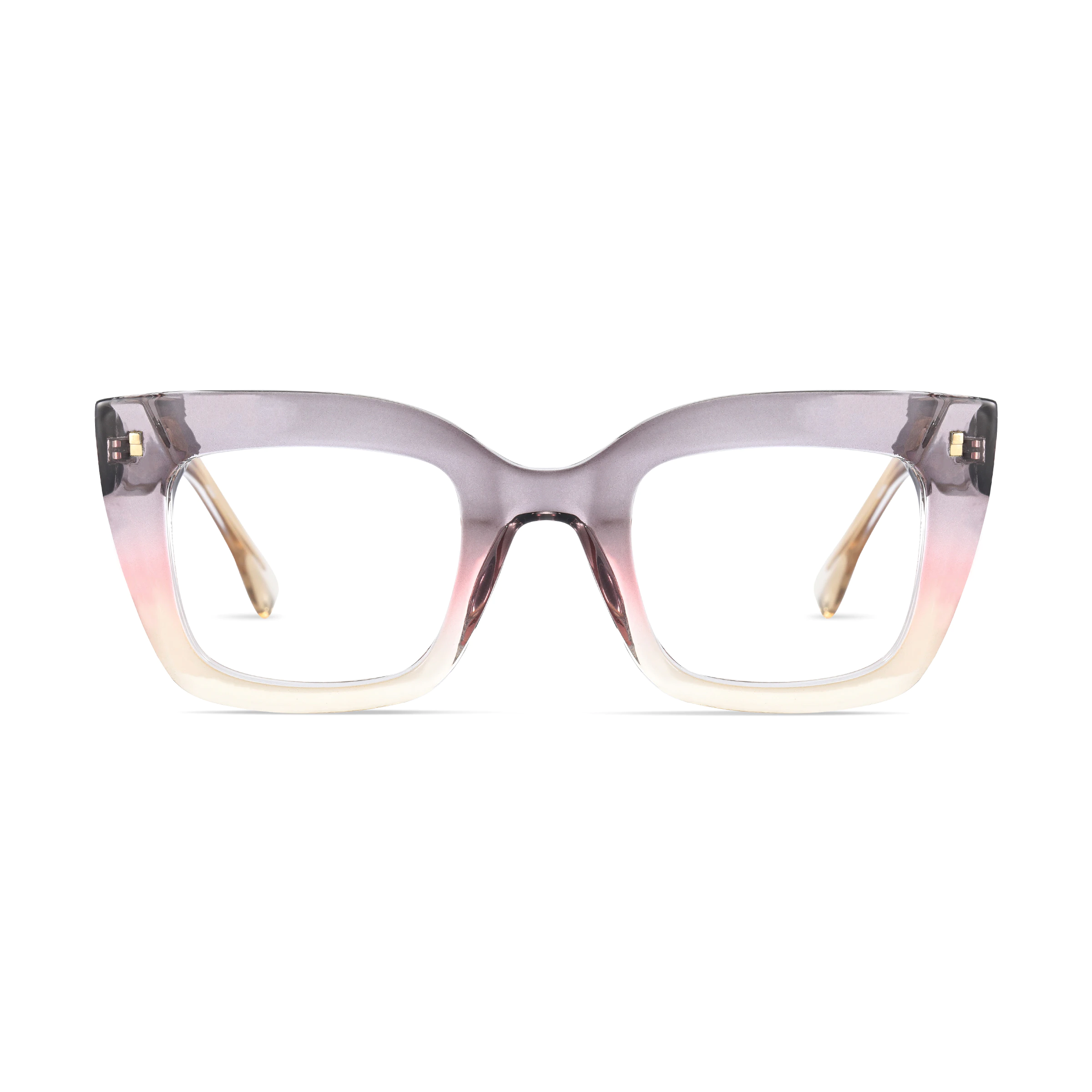 Cat-eye transparent gray glasses with soft tones and elegant curves to showcase feminine charm. The distinctive cat-eye shape enhances facial features, adding sophistication and vitality, perfect for various occasions to brighten your look and draw admiring glances.