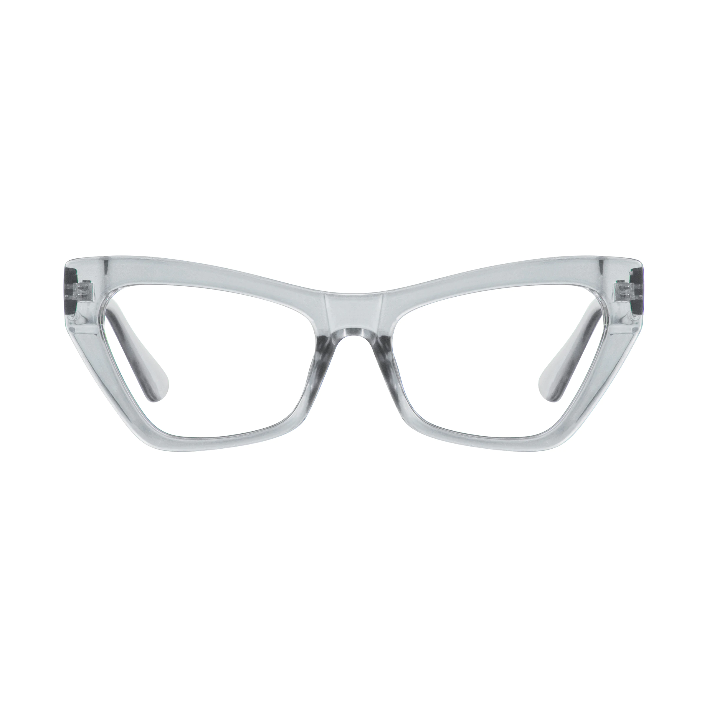 The translucent gray cat-eye frame is a sleek and sophisticated accessory that adds a touch of modern elegance to your look. The soft gray tone gives a refined and subtle appearance, while the cat-eye shape maintains a chic, feminine flair. Perfect for anyone who loves understated style with a contemporary edge.