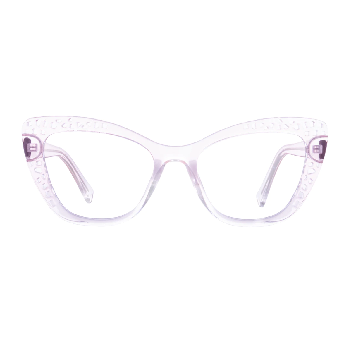The translucent and pink cat-eye frames offer a playful yet elegant look. The soft pink hue adds a touch of femininity, perfect for adding a subtle pop of color to any outfit. Acetate material ensures they are lightweight and comfortable.