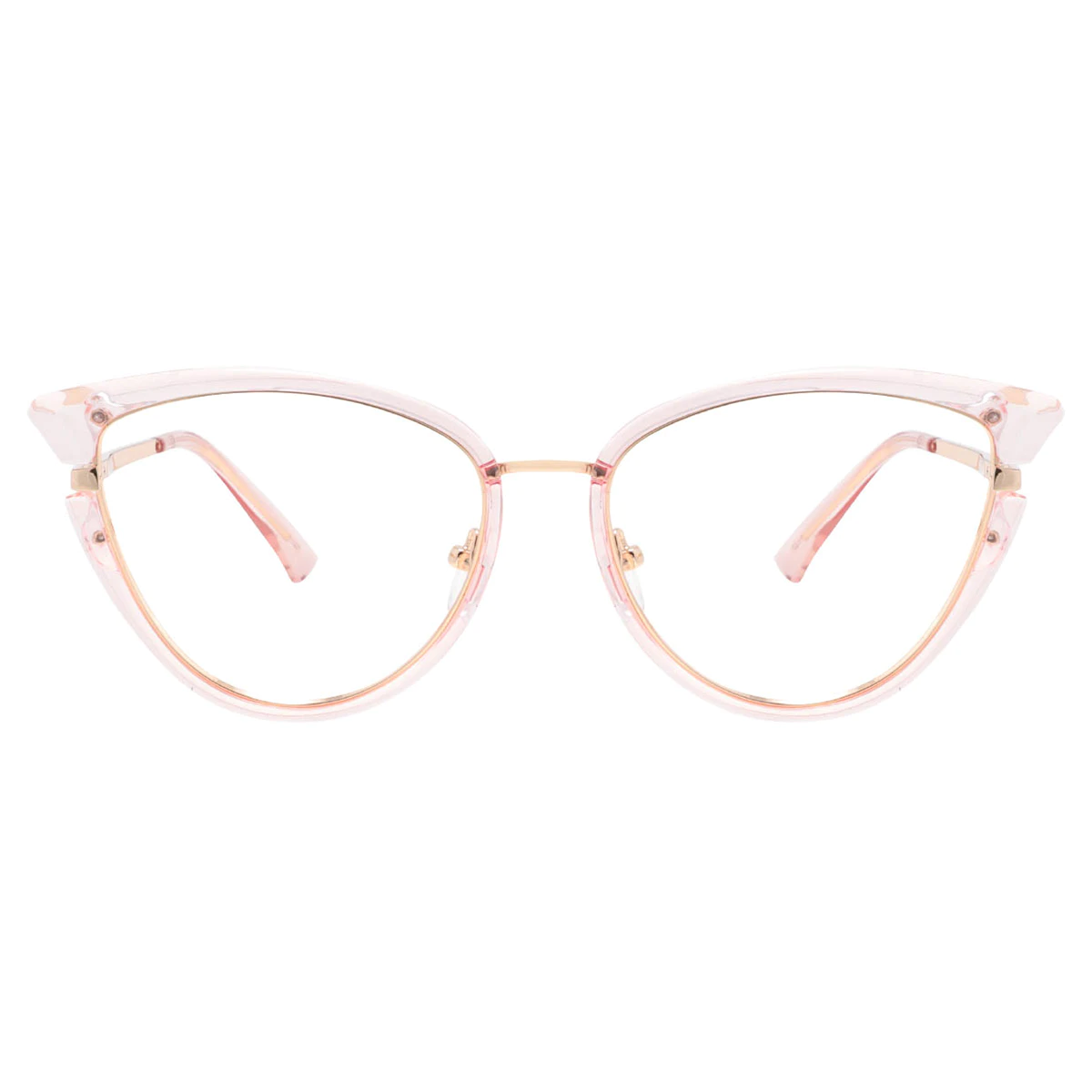The Transparent Pink full-rim cat-eye glasses bring a soft and feminine touch to your style. The clear pink TR90 frame is both lightweight and durable, offering all-day comfort. With metallic accents, these glasses provide a chic and contemporary aesthetic.