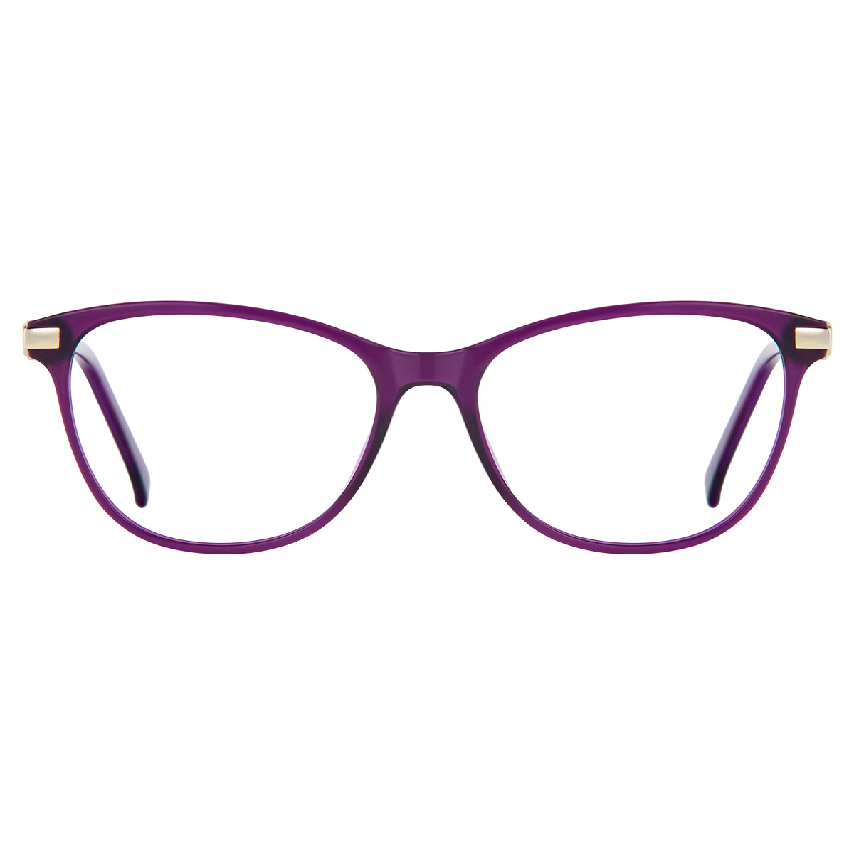 The rich purple frame with gold accents provides a luxurious and royal look. The combination of these bold colors complements the elegant cat-eye shape, making it perfect for those who want to stand out with sophistication.