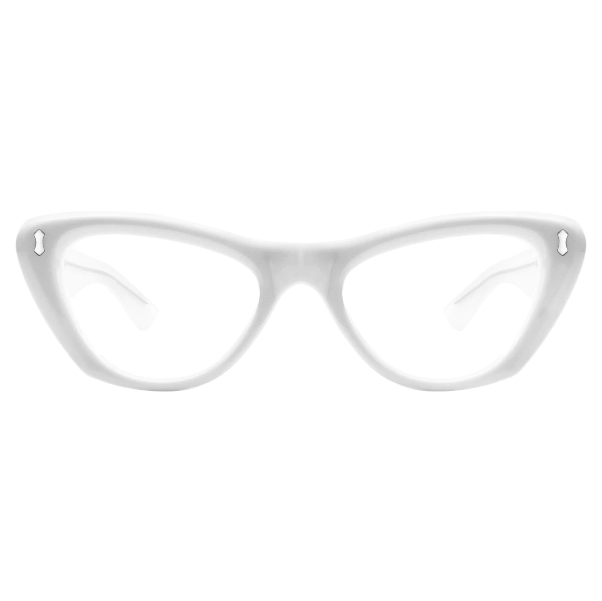 Crisp white cat-eye frames crafted from PC offer a modern take on a vintage style. The clean lines and full-rim structure make these glasses a standout accessory for both classic and contemporary outfits.