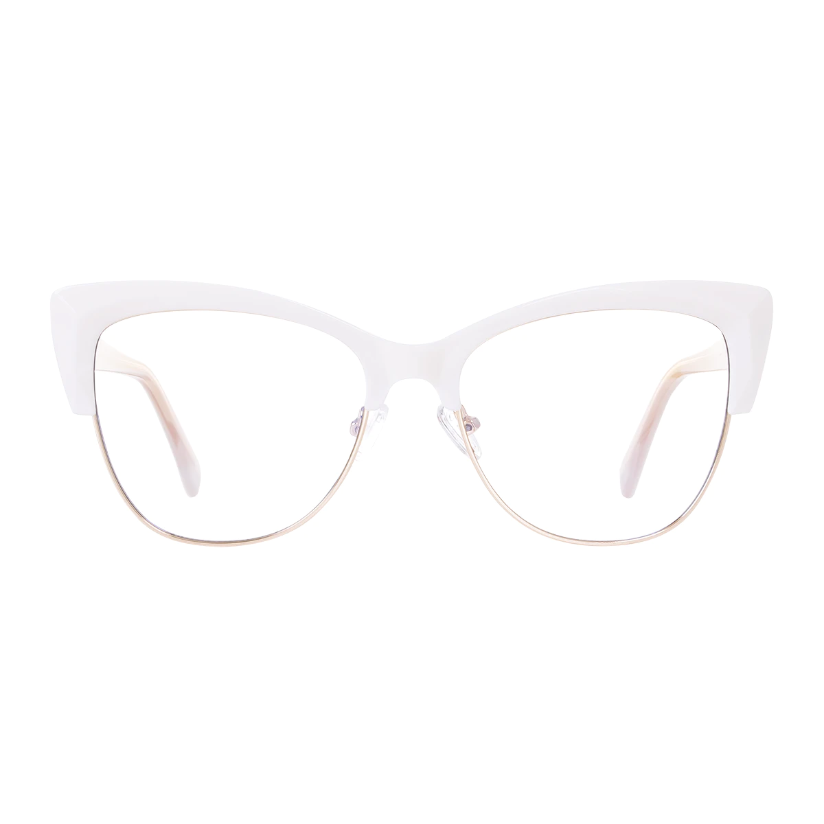 The white cat-eye glasses blend classic elegance with modern style. Crafted from TR90 and metals, they offer a sleek, fashionable look. Perfect for brightening up any outfit, these glasses are ideal for both casual and formal occasions.
