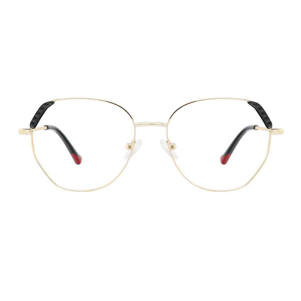 The Gold/Black geometric frame is a bold statement piece, perfect for those looking to add a modern touch to their look. Its striking design makes it the ideal accessory to complement any fashion-forward outfit.