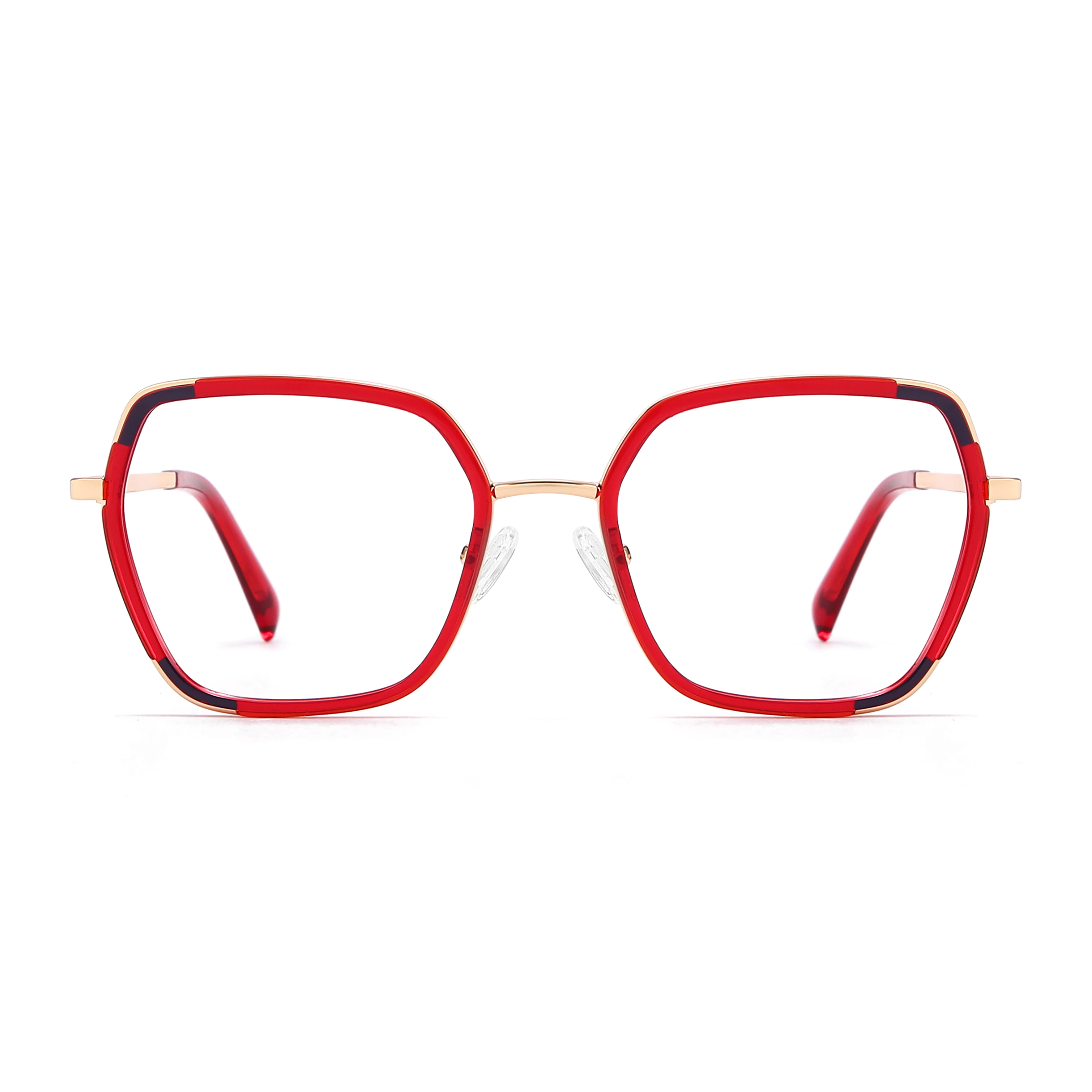 Make a statement with these Red/Gold geometric glasses. The vibrant red frame paired with gold accents brings confidence and flair, perfect for bold, fashion-forward individuals.