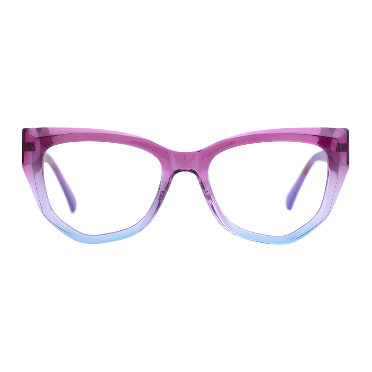 Brighten up your style with these Purple-Blue Geometric eyeglasses. The eye-catching color combination and geometric design make these glasses a standout accessory, while the TR90+CP construction provides excellent comfort and long-term durability.