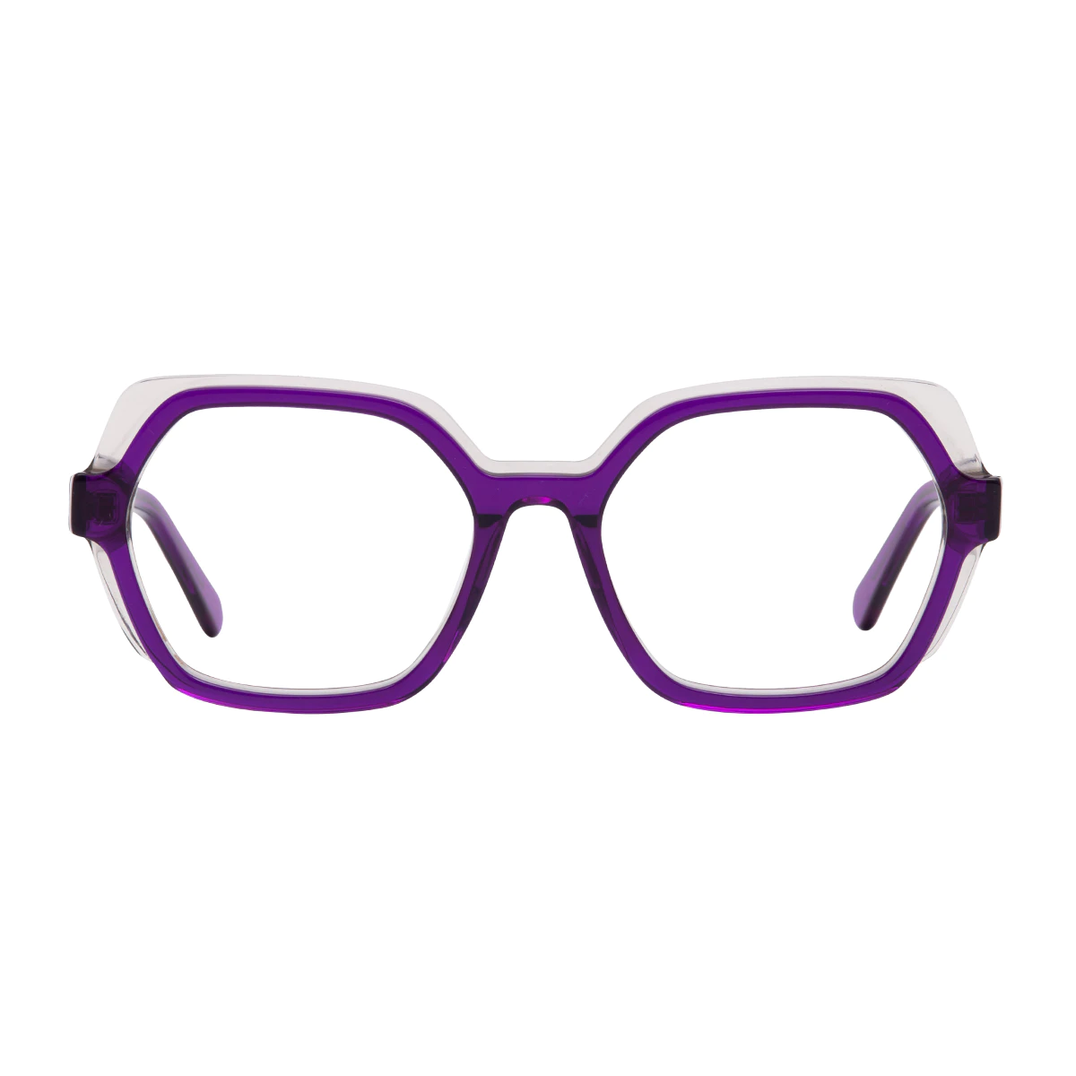 Offering a fresh take on modern eyewear, the purple-translucent frame combines geometric design with a cool, contemporary feel. The light color is versatile and adds a distinct edge to everyday wear.