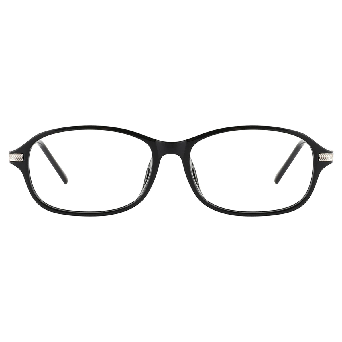 These black full-rim oval eyeglasses are the epitome of timeless elegance. Crafted from TR90 and metal, they offer a lightweight and durable option for daily wear. The classic black color enhances the vintage-inspired design, making them a versatile choice for any wardrobe.