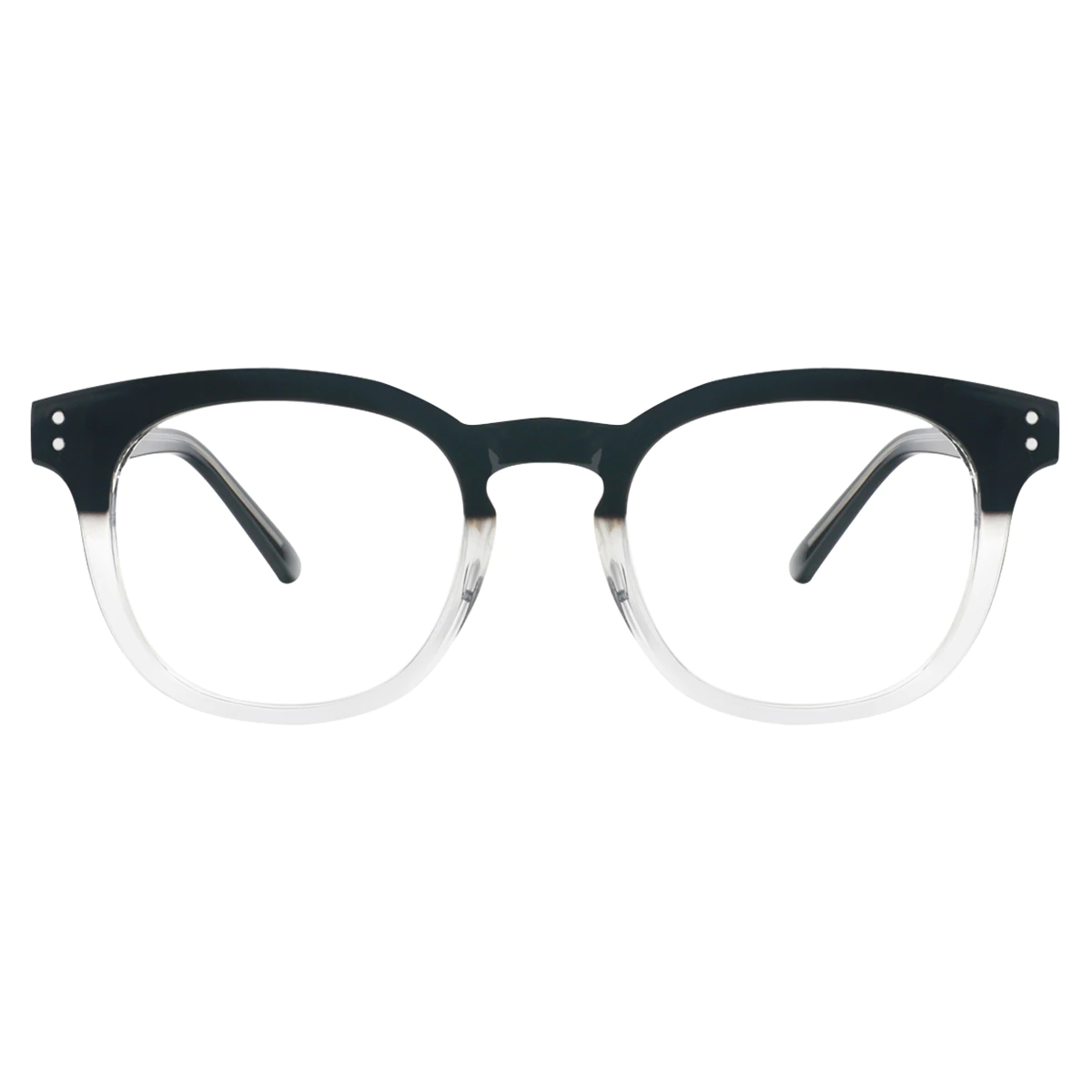 Unleash your unique style with our trendy full-rim glasses featuring a striking black upper and transparent lower design. Made from lightweight TR90 and PC, these frames combine boldness with a modern twist. This versatile look pairs seamlessly with any outfit, making it a must-have accessory for fashion-forward individuals.